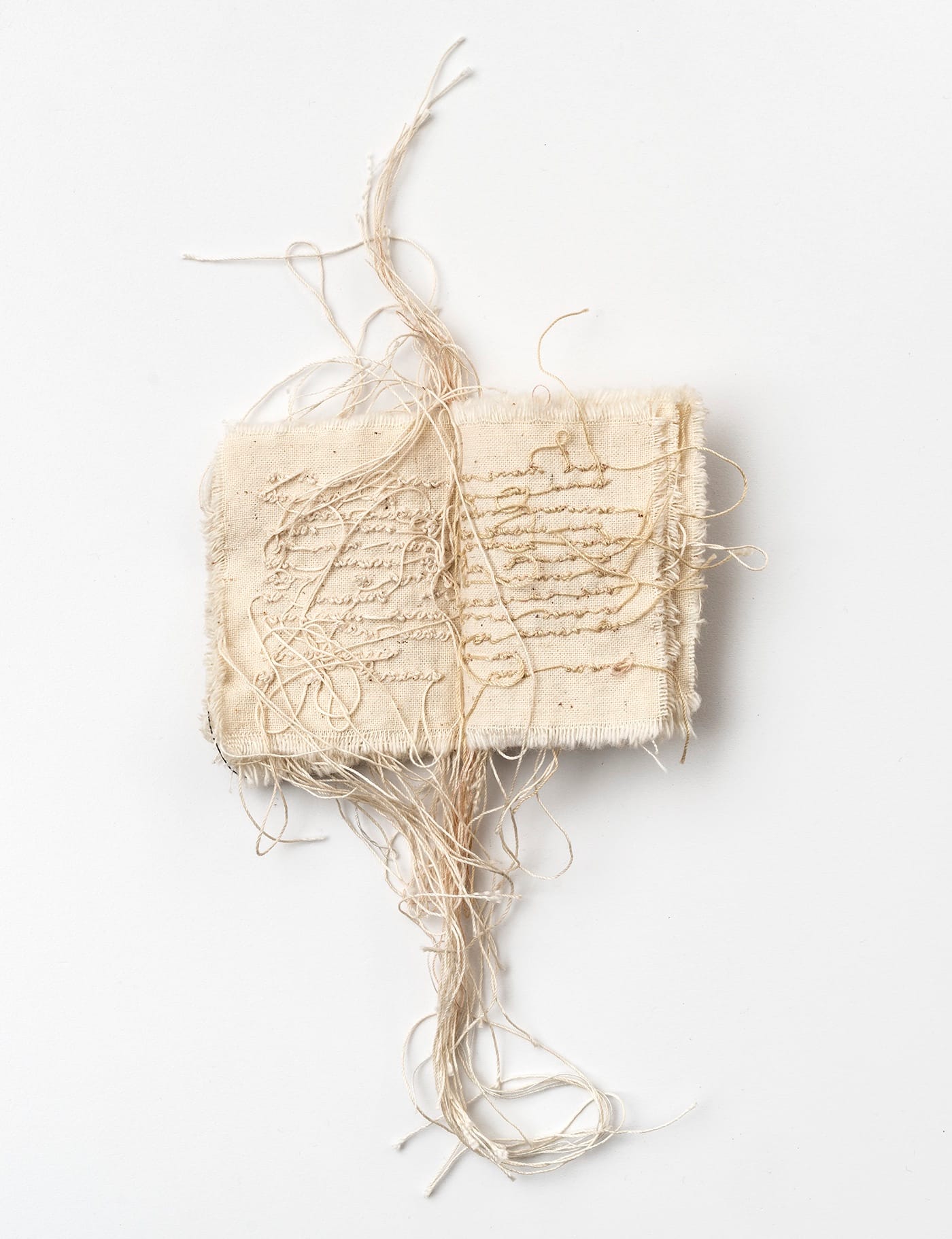 Maria Lai (1919-2013), who came from Sardinia, studied art in Rome and Venice but later withdrew from the art world, only to return in the 1960s with unconventional works made from rope, straw, twine, and even bread. Her “books” made with fabric and lines of “writing” sewn into their “pages” hauntingly subvert the look of written language.