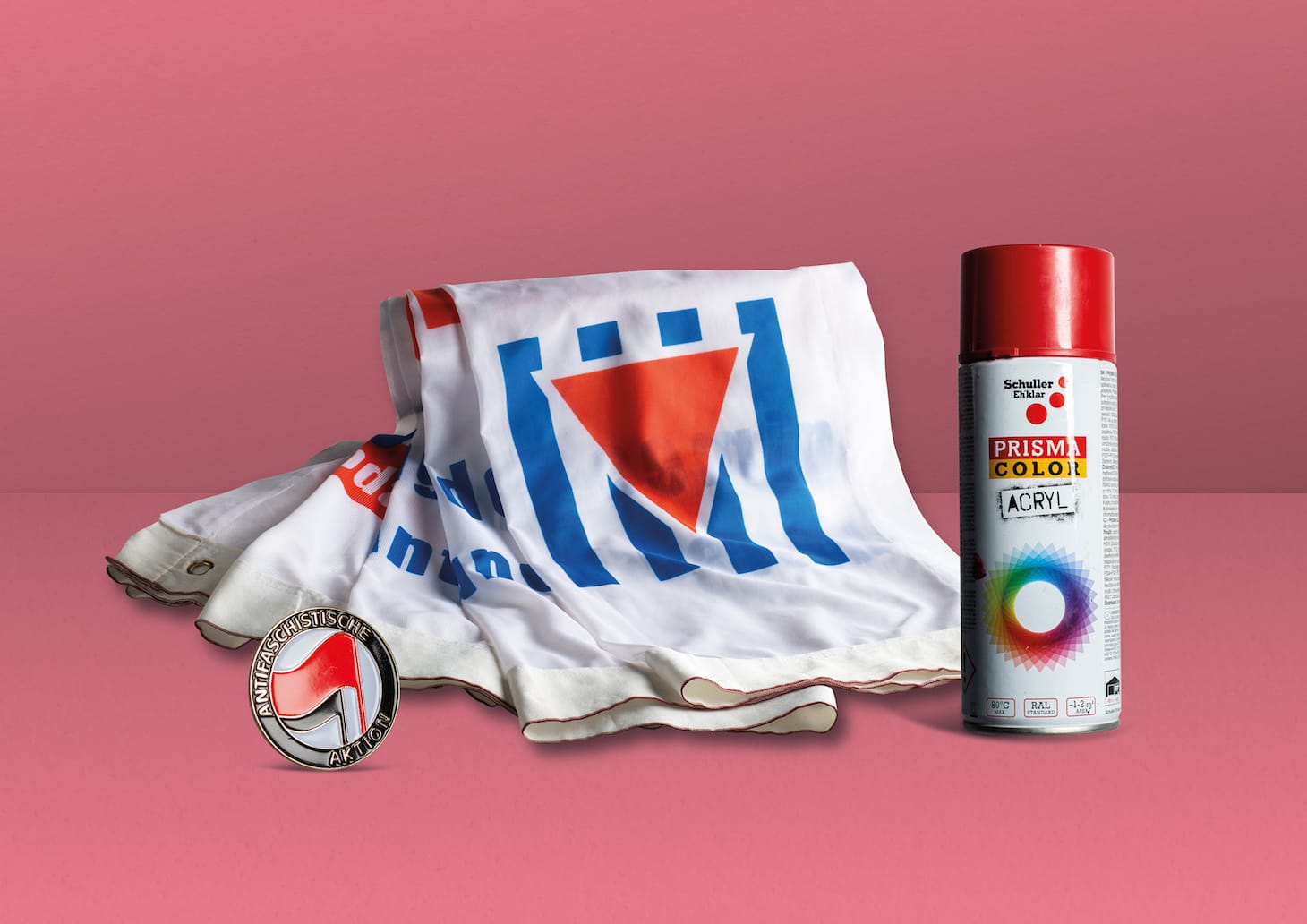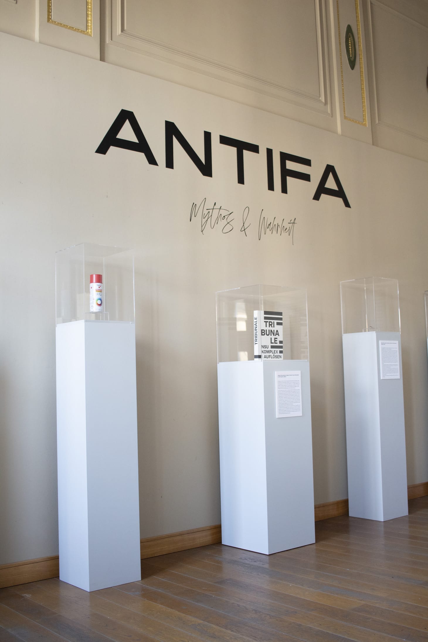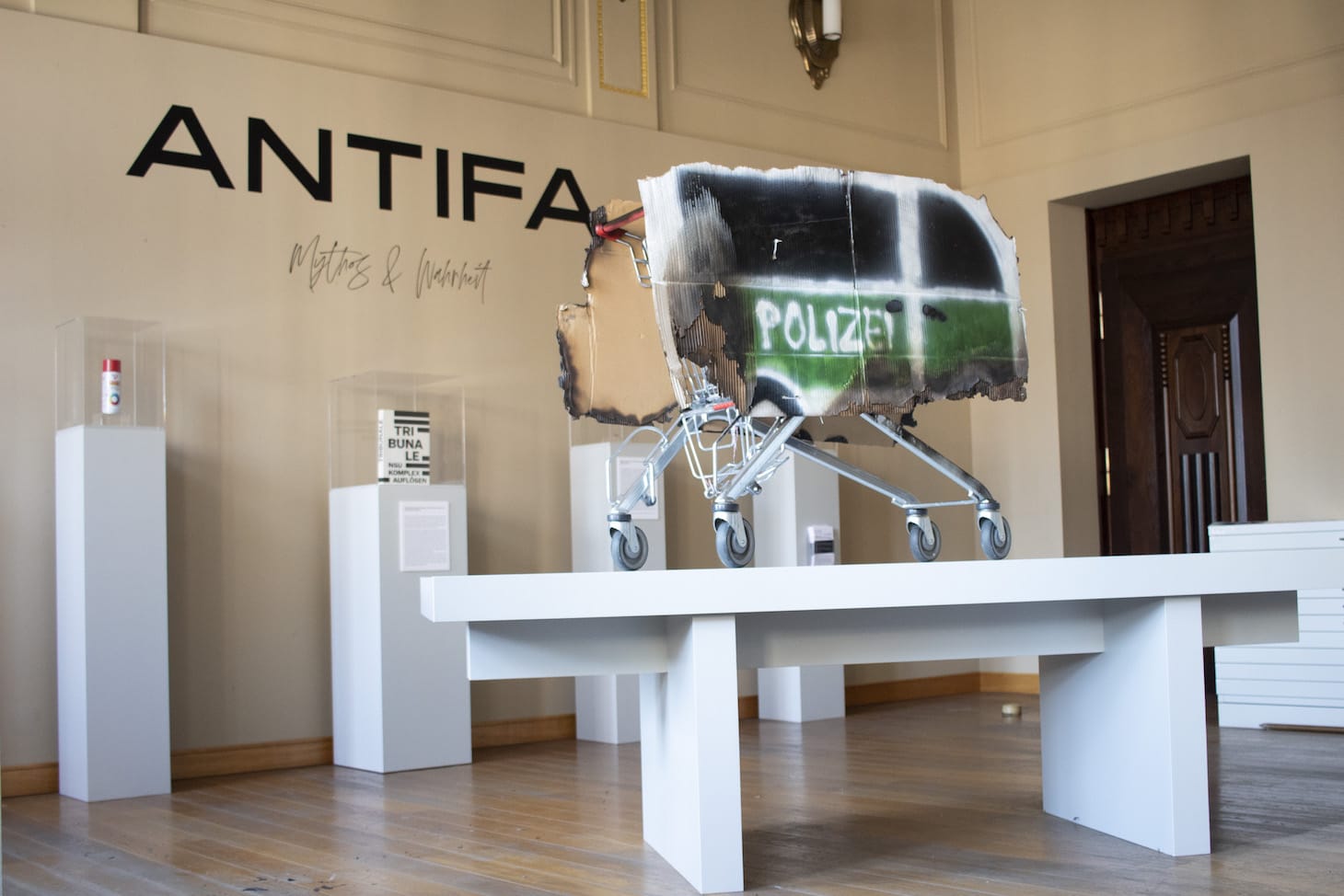 As two of the three organizers explained over a video call in late September, the ten objects included in “Antifa: Myth and Truth” have been used as media firebrands: symbols spun by opponents to emphasize a narrative of violent threats from the left. Peng! explicitly aims to challenge this construction, and feels it is historically necessary to do so: “Being anti-fascist should be common sense, especially in a country which is the motherland of National Socialism,” said one of the artists. “You should be anti-fascist. There should be no debate.” But, as the show explores — a notion surely relatable to Americans — once right-wing extremism saturates national politics, facts become difficult to decipher.