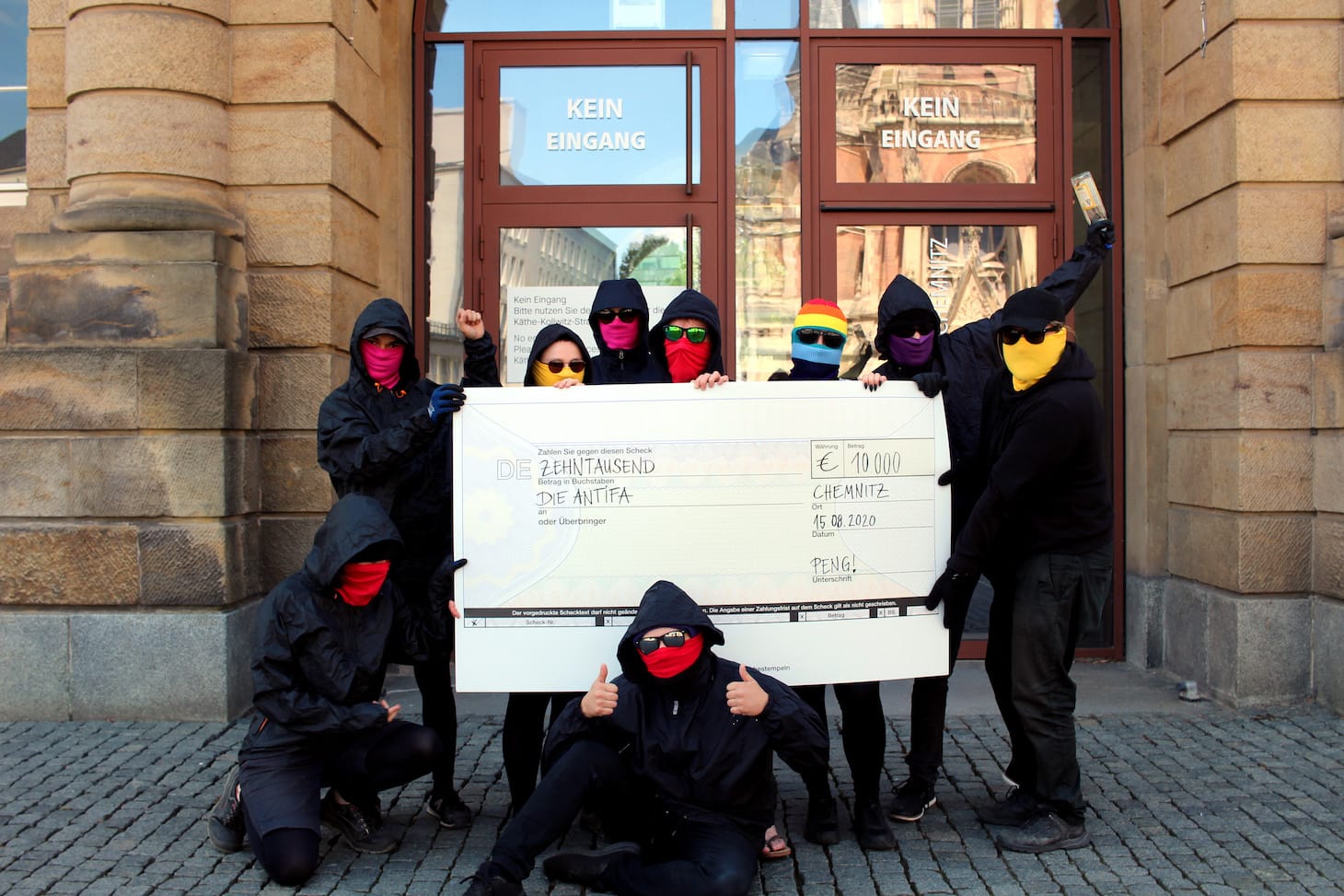 In those intervening years, one particular radical right-wing party has entered the political mainstream: Alternativ für Deutschland, or AfD, a party which has saturated almost all sectors of the state and federal Parliaments. In Saxony, the AfD presence is especially strong, holding 27.5% of Parliamentary seats as of the most recent election in 2019. The results have been overwhelming and dangerous: the normalization of violent and hateful ideologies, increased attacks against immigrants, and the defamation of anti-fascist activism as insurgent extremism. Antifa in Saxony is seen, as one of the Peng! members described to Hyperallergic, like “a black block violent group that’s rioting in the streets. But,” as he continued, “there’s so much more to it.”