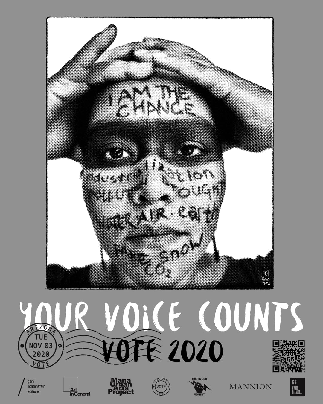 Time to finish this. This irreverent tag line is just one of the many that grace more than 60 posters that comprise Project 270, a “Get Out the Vote” initiative by Mana Urban Arts Project (MUAP). Since 2015, the programming offshoot of Mana Contemporary, located in Jersey City, New Jersey, has historically worked with street artists worldwide to realize site-specific murals. But in this election season — the most turbulent in generations and taking place amidst the ongoing pandemic — MUAP has shifted its focus to engage with disenfranchised voters across the country.