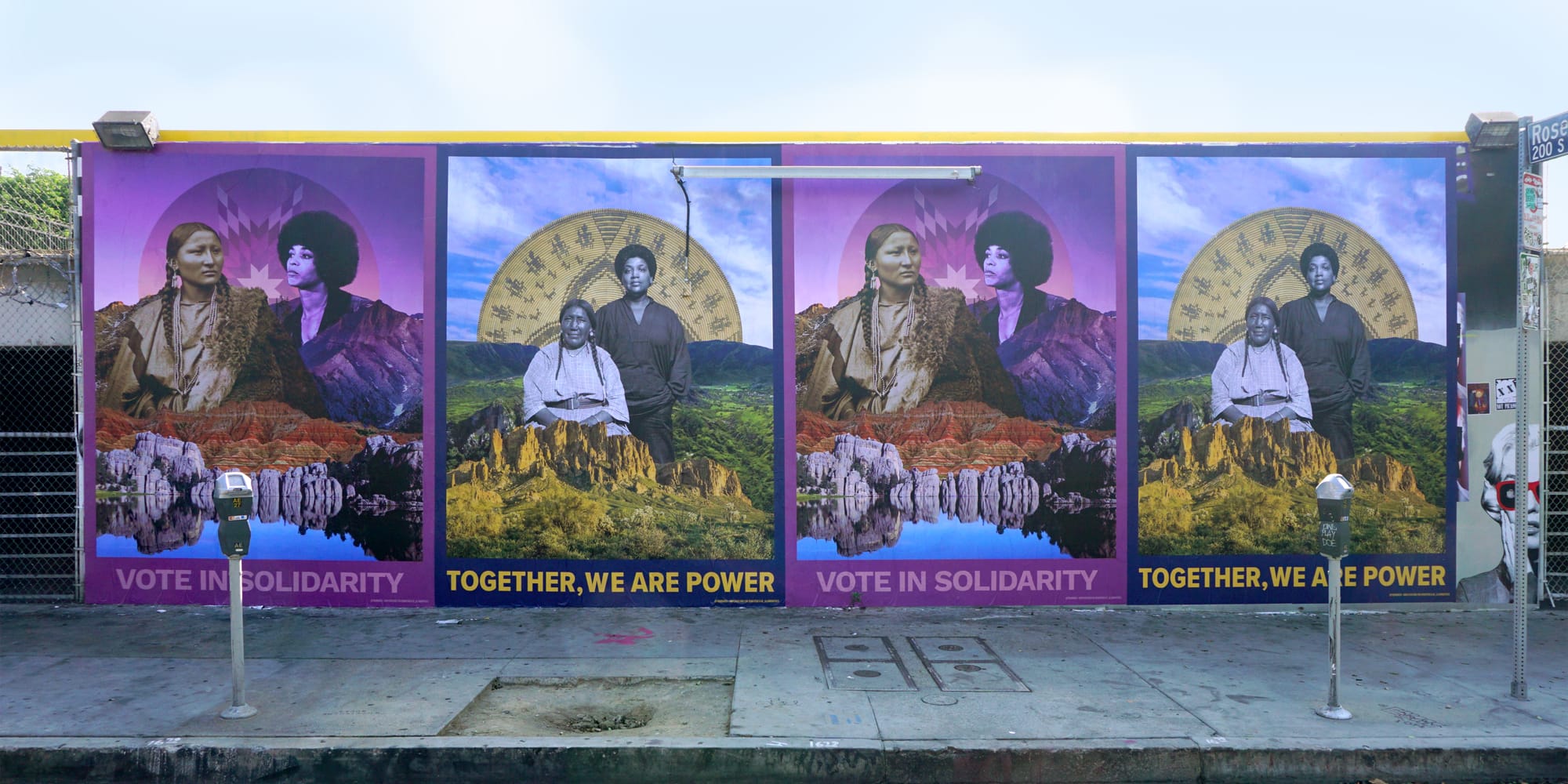 Fifty thousand print versions of these works were distributed around the country as posters and stickers, and as large-scale murals and projections in Seattle, Anchorage, Boulder, New York, Portland, and Los Angeles. Community groups have received printed posters as well. An interactive map displays where the public can find these works in their communities.
