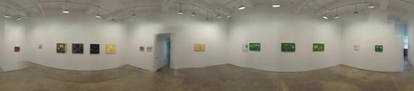 The show is titled Voice and Speech, but there’s an erie silence to these works. The artist’s hand is alway present and the paint is often treated like ink, flowing with a dark contrast across washes of paint, defining space and and giving each rectangle it’s own character.