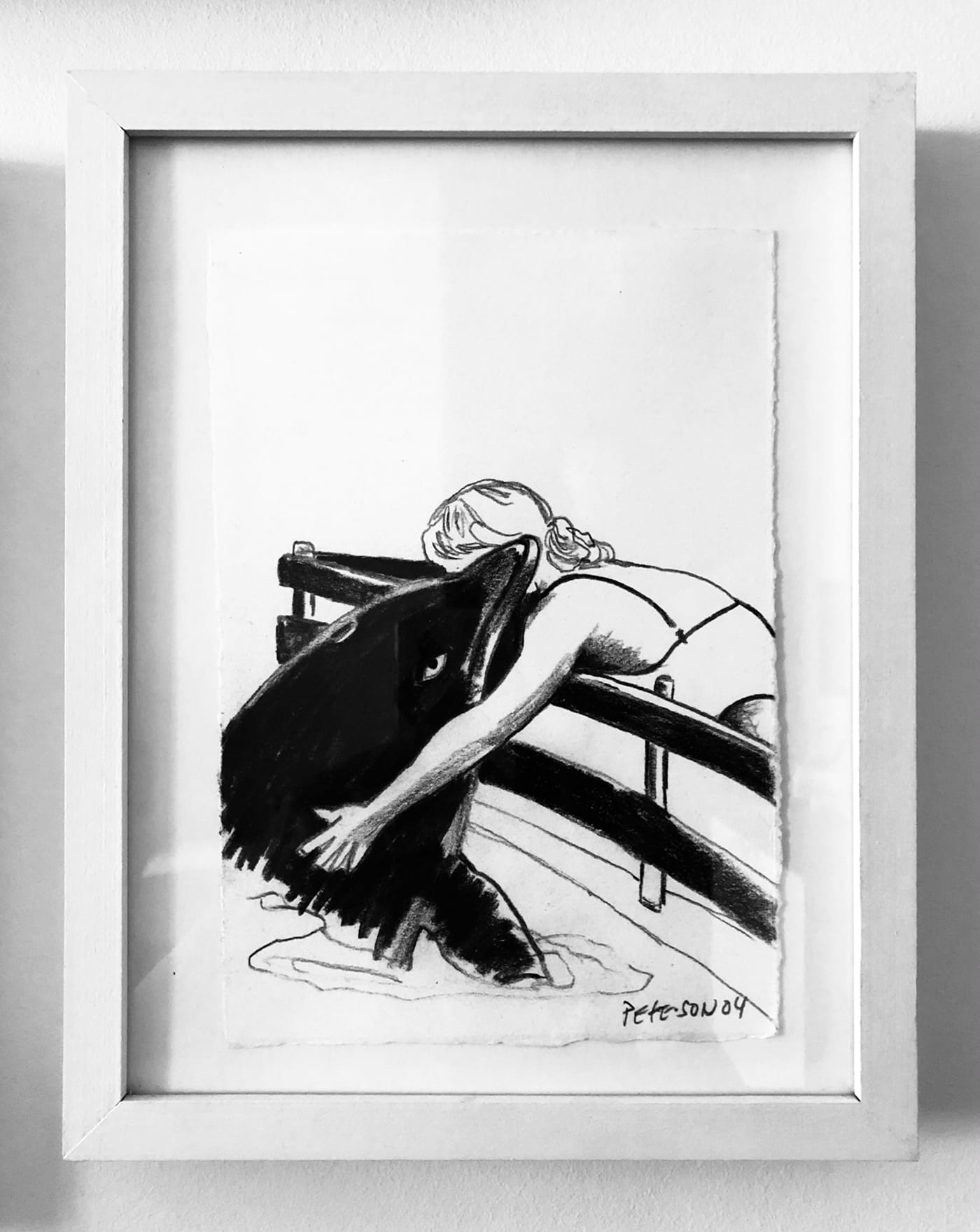 I've always loved looking at this drawing, but recently its quirkiness has become an even more comforting presence. What is that fence? Why is her lower body missing? Why is the dolphin’s eye open… is it bored, apathetic, tired of performing?