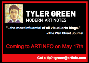 On Tuesday, Tyler Green announced that he will be ending his 8 1/2 year stint at ArtsJournal for the mainstream art media world of Louise Blouin Media’s Artinfo and Modern Painters. The news came as a surprise to many who view Green’s online voice as a cornerstone of the indy art blogosphere. Yet the veteran art blogger — though he dislikes the label — doesn’t expect to change what he already does. When I asked him if he thought the bigger soapbox was going to change the nature of what he writes, he answered, “It’s still me. I’m not going to try to be something I’m not. Let’s wait and see. I don’t know, writers write, right?”