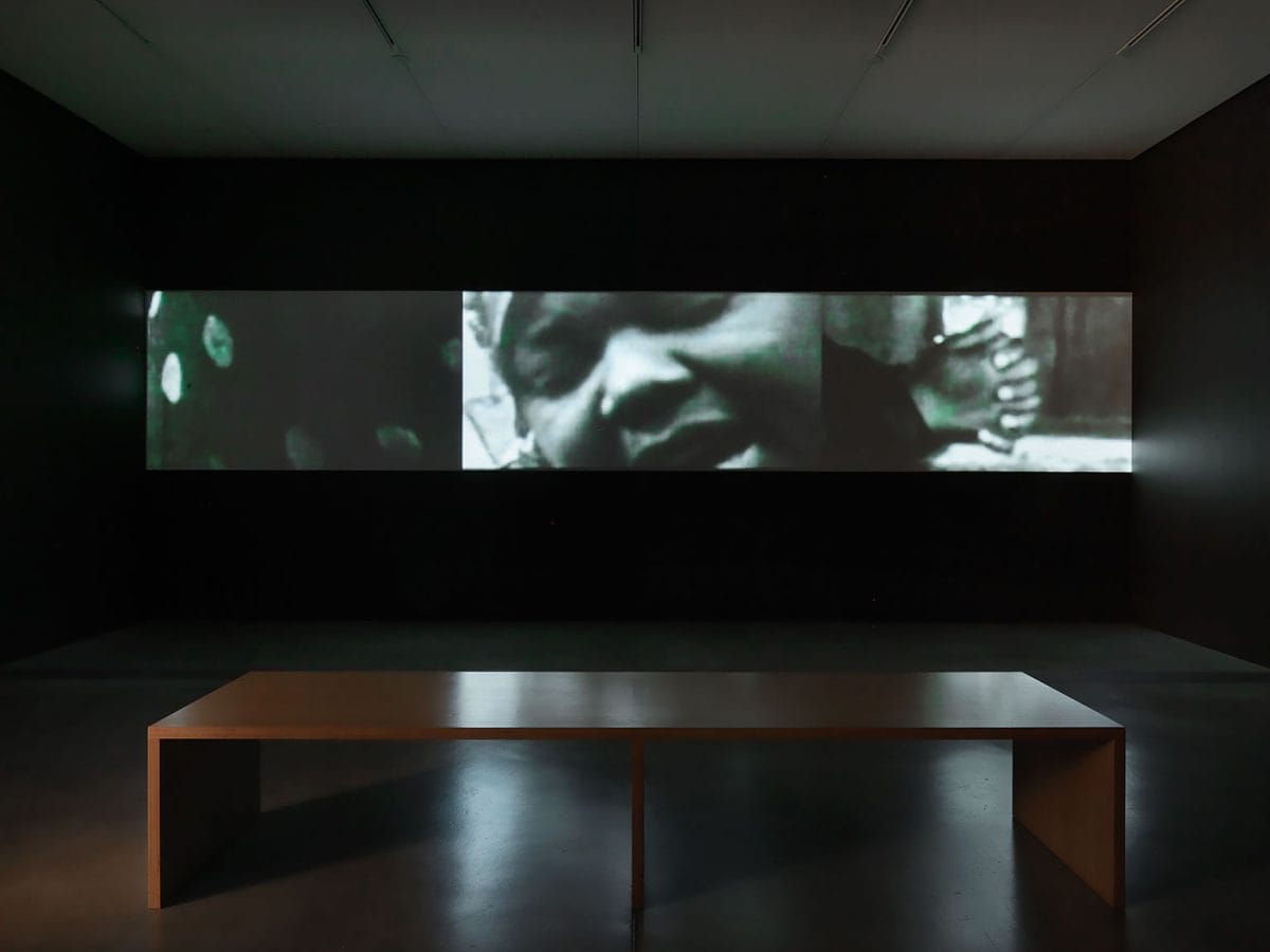 But it is the inclusion of some of his lesser-known works that makes the exhibition particularly impactful. In Mute (2007–2011), Adkins clipped three shots from the 1929 film St. Louis Blues — which features the only known footage of iconic blues singer, Bessie Smith. Removing the sound, he created a single-channel video, featuring three panes of moving images composed as a triptych: close-ups of Smith’s polka-dotted dress, her face, and hands. Where normally we would listen, Adkins makes us look.