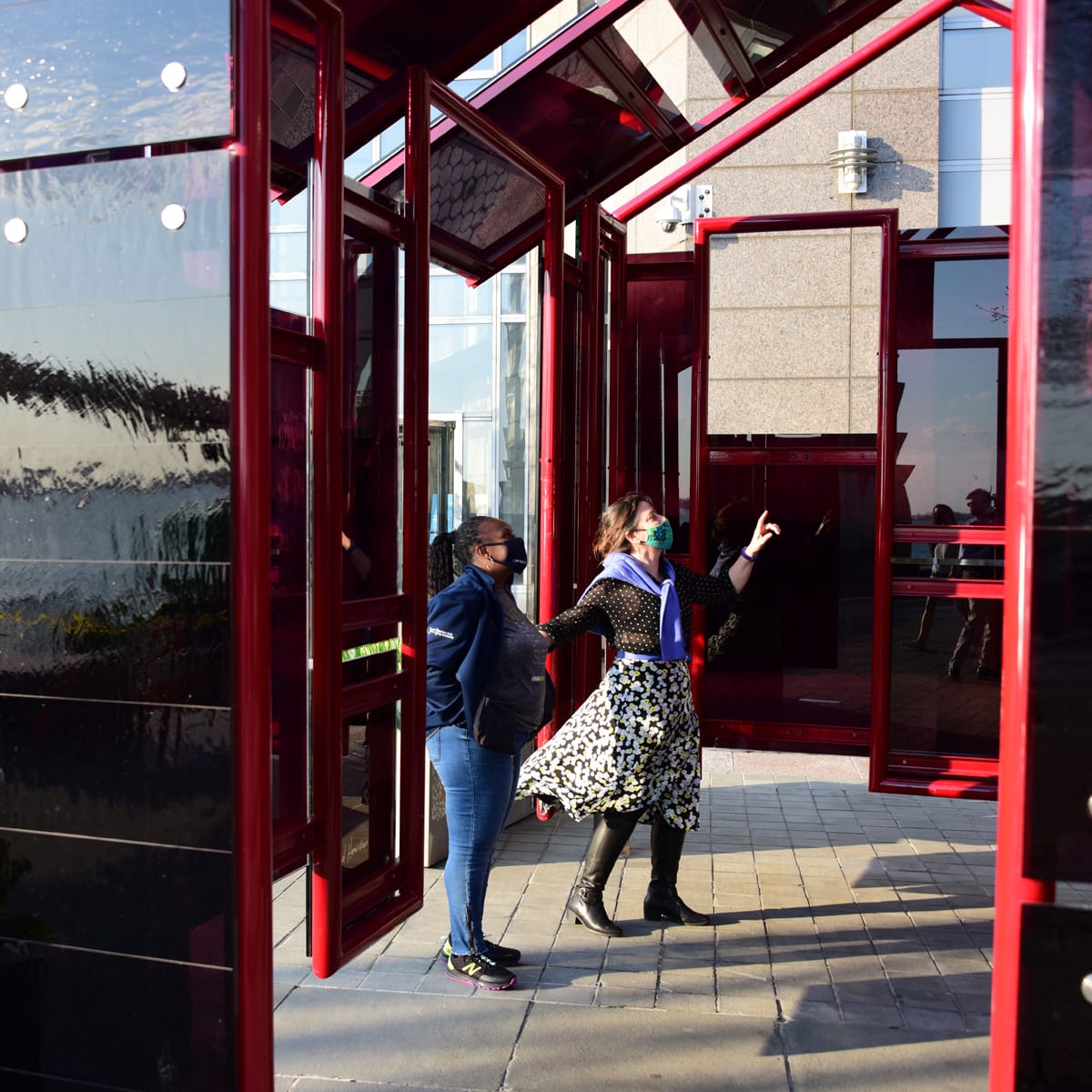The Battery Park City Authority (BPCA) has introduced a new public art installation by artist Mildred Howard at Belvedere Plaza, just north of the North Cove Marina in Battery Park City. The piece, titled "The House That Will Not Pass For Any Color Than Its Own" (2011), is constructed of automotive steel and laminated glass. It is on loan from the Sacramento County Department of Airports and will be on view at Belvedere Plaza through spring 2022.