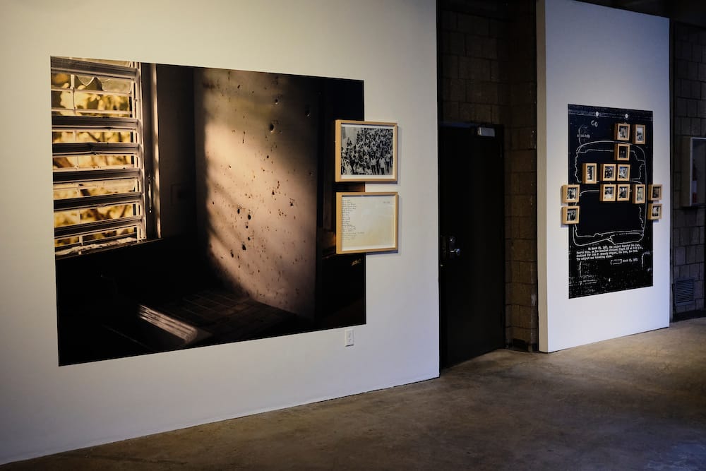 At the exhibition’s entrance, viewers are first confronted with a photograph of a sea of army green folders with white, typewritten labels, peeking out of a rusted gray metal file drawer. To the right of this initial image is another color photo of even more files, some half opened, some with labels falling off.