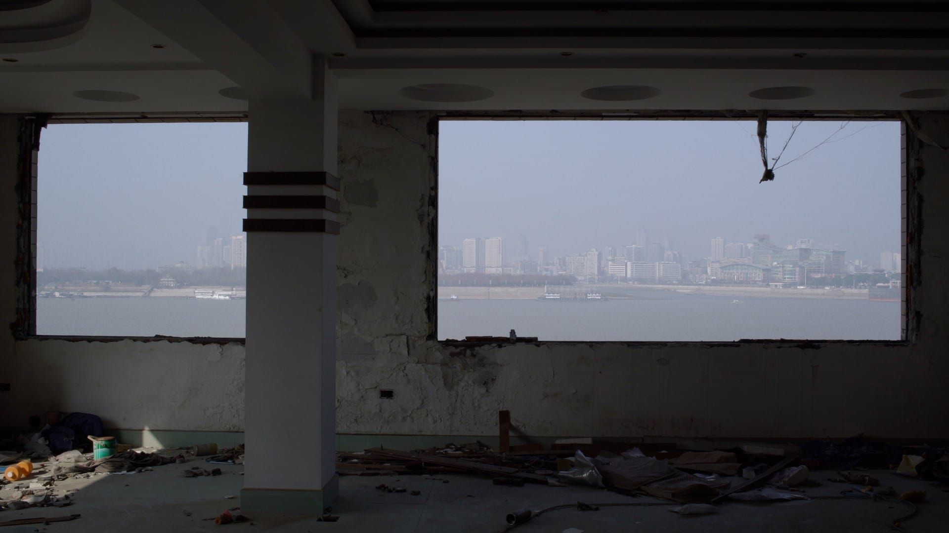 “The city now is like an endless construction project,” Zhu tells Hyperallergic over a video call. Having moved to Chicago in 2015, for Zhu, going home meant having to adjust to a deeply transformed environment. “It’s really difficult to distinguish between a ruin or a building site, so it was really hard for me to feel familiar again.” These neverending transformations gave Zhu the idea for her documentary, which she started working on in the summer of 2016. “I wanted to examine the relationship between the residents and the space they inhabit.” She envisions the city as a stage on which she captures citizens carrying on with their lives. To do so, she decided that a static camera would dictate the visual grammar of the film. “By using static shots, I wanted to give the audience enough time to familiarize themselves with the landscape, to synchronize with the calm rhythm of the river flowing in the background.”