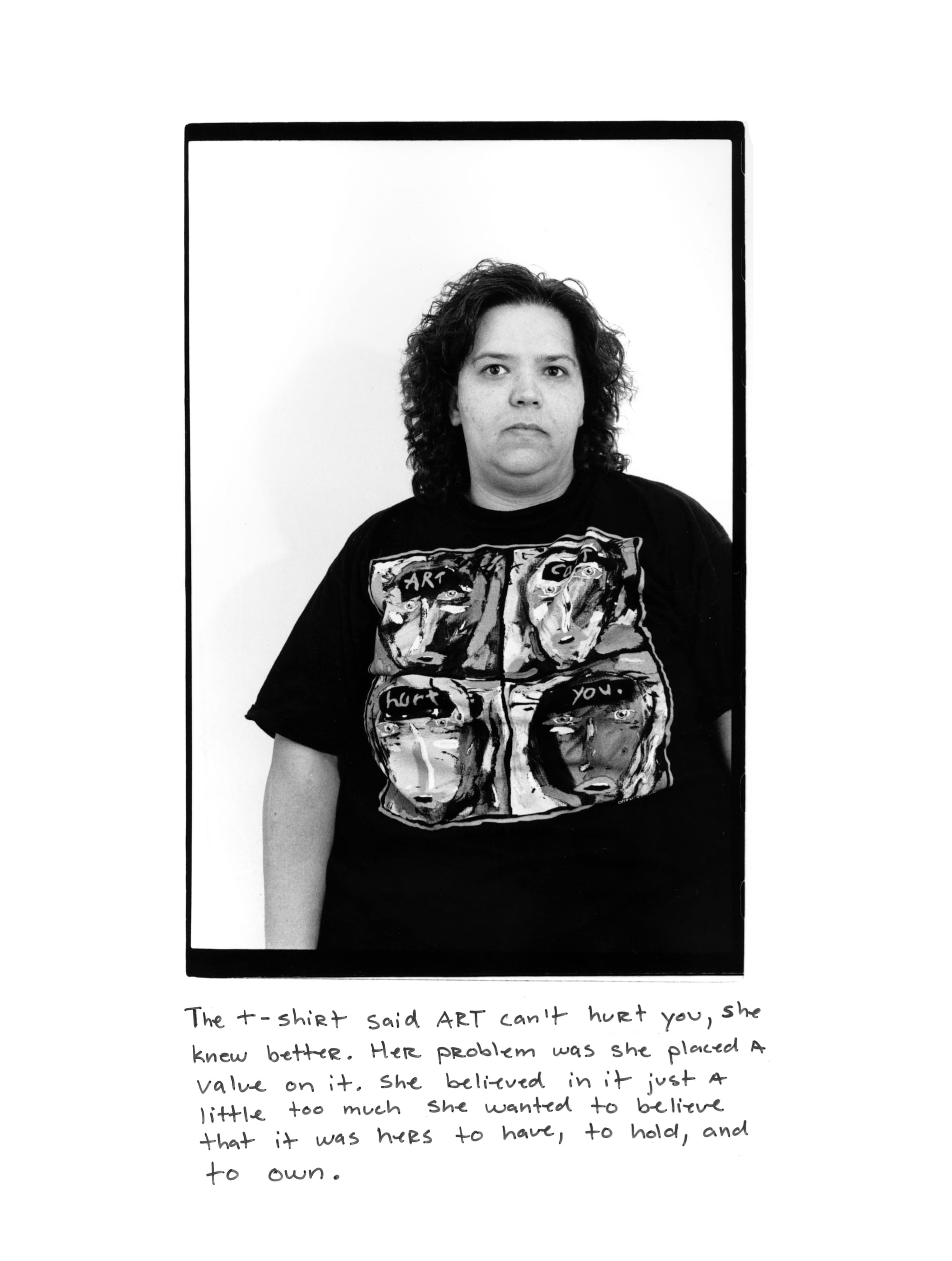 Walking through the gallery, I am most struck by the moments when Aguilar’s writing burst through. Clear and concise, her writing is a scalpel getting at the heart of the matter. In Latina Lesbians she writes, “I’m not comfortable with the word Lesbian but as each day go’s [sic] by I’m more and more comfortable with the word LAURA. I know some people see me as very childlike and naive. Maybe so. I am. But I will be damned if I let this part of me die.” In this simple paragraph, is a full manifesto: a declaration of Aguilar’s intent to be real and raw and altogether herself despite any obstacles or fear she might face.