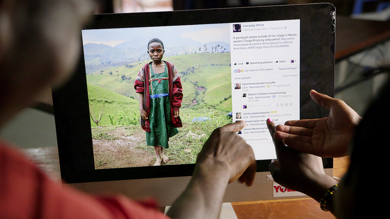 Betty Vivuya is a local visual journalist and filmmaker who participates in this conversation and several others throughout the film. We see her going to a French cultural institution, demonstrating the difficulties face by African filmmakers in trying to secure external funding. Betty is working on a film about neocolonialism, 21st-century labor, and mining. She lays out her intention to complete the final shoots in Brussels, noting that this rides on her ability to take her Congolese crew. This demonstrates a determination to maintain the connection between the material dimension of the production and the ideological framework of her film.