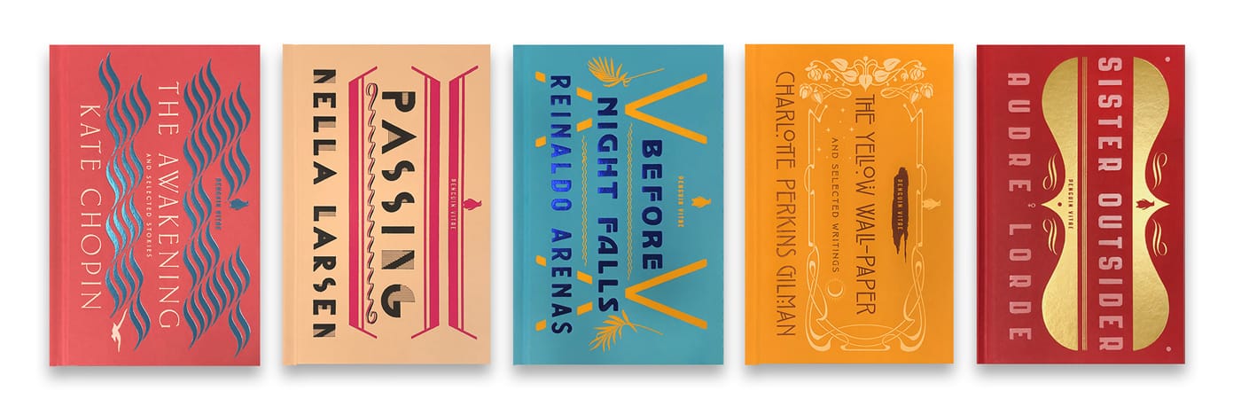 Penguin Classics snagged a prize-winning spot for a five-book box set of lynchpin works by Audre Lorde, Kate Chopin, Nella Larson, Reinaldo Arenas, and Charlotte Perkins Gilman, which juror Jennifer Morla described as, "Typographic eye candy: a horizontally oriented, colorful carousel of a series for Penguin."