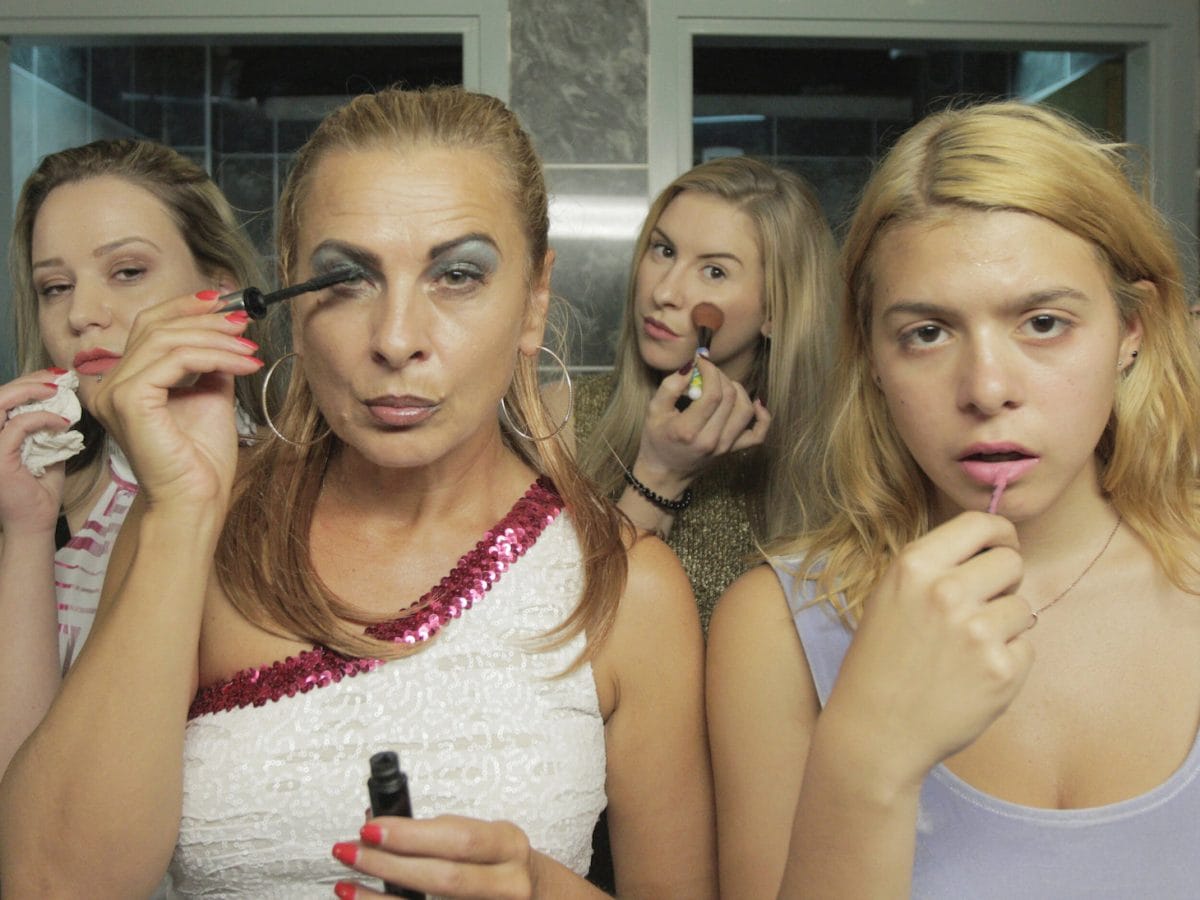 In the first shot of Take Me Somewhere Nice, curtains billow for a full minute as a soft cricket song plays in the background and shadows flit behind their folds. Are we lurking voyeuristically outside some hushed domicile? How many people are behind the window, and what could they be doing? Suddenly, techno beats drown out the insect melody. In the following shot, the drapes are replaced with dressing room curtains in a juniors clothing boutique, the same throbbing house music playing in the distance. A pensive brunette with huge brown eyes and a forehead scar stares into the mirror, her body quadrupled in each of its panes, a delicate heart pendant hanging from her neck. “I can’t decide,” she says, pressing a red dress against its lilac velour twin that clings to her body. “I want both.”