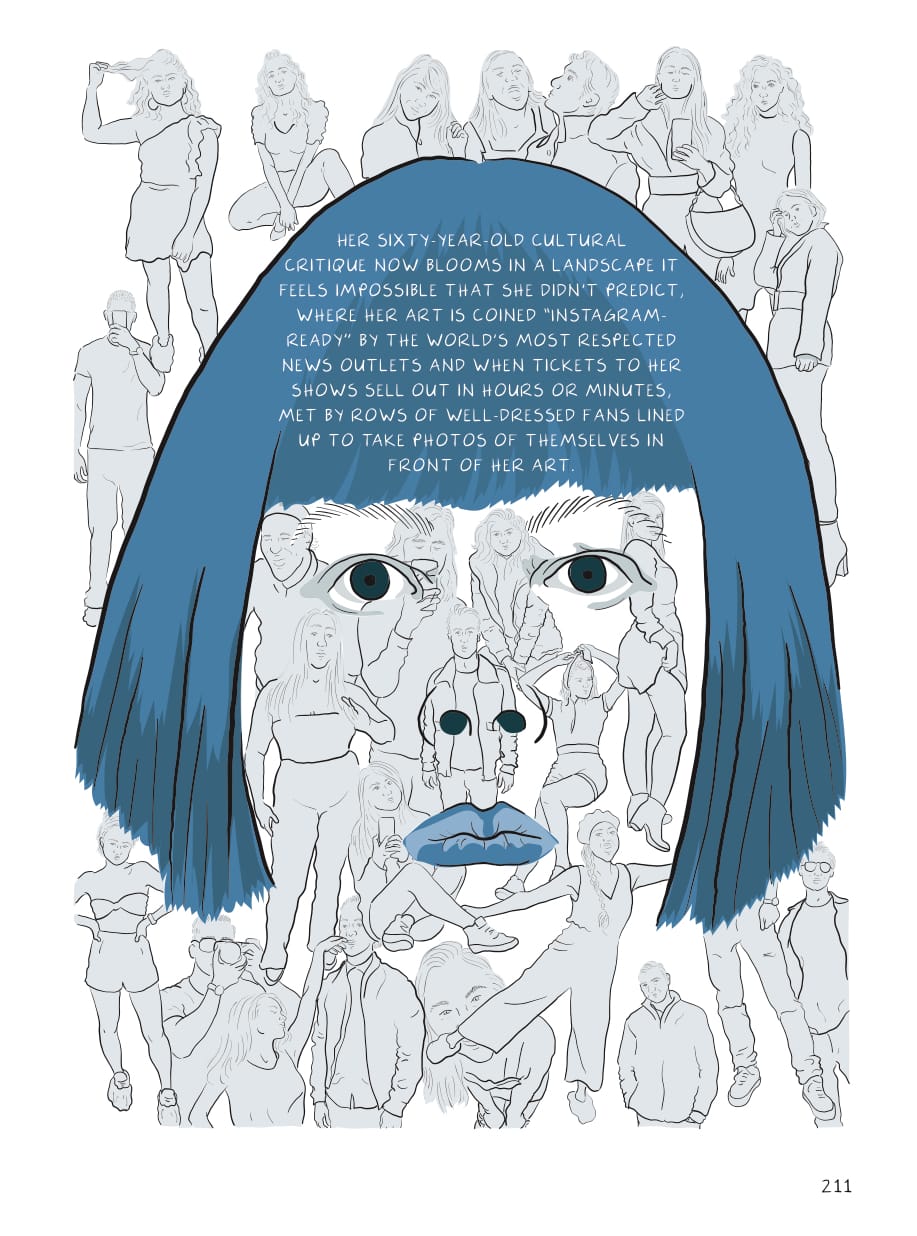 In her new graphic nonfiction book Seek You: A Journey Through American Loneliness, Kristen Radtke recounts an unusual experience with Yayoi Kusama’s work: she sees it alone. Even after a pandemic year devoid of blockbuster exhibits, it’s hard to conjure the image of a Kusama show without a stanchioned mass of visitors along its periphery. But Radtke happens to see it at the Bellagio casino in Las Vegas, where even an "Infinity Mirror Room" can be lost in the sea of spectacle. The writer and artist, who is also art director and deputy publisher of The Believer magazine, arrives with what she describes as a “silent sense of superiority,” as she recognizes the disconnect between Kusama’s vision of self-obliteration and the public’s obsession with using her art as backdrops for selfies. Yet, when she enters an "Infinity Mirror Room," Radtke immediately photographs herself — a moment captured in the book as a stunning, page-spanning drawing of Radtke surrounded by flecks of gold against a dark blue backdrop.