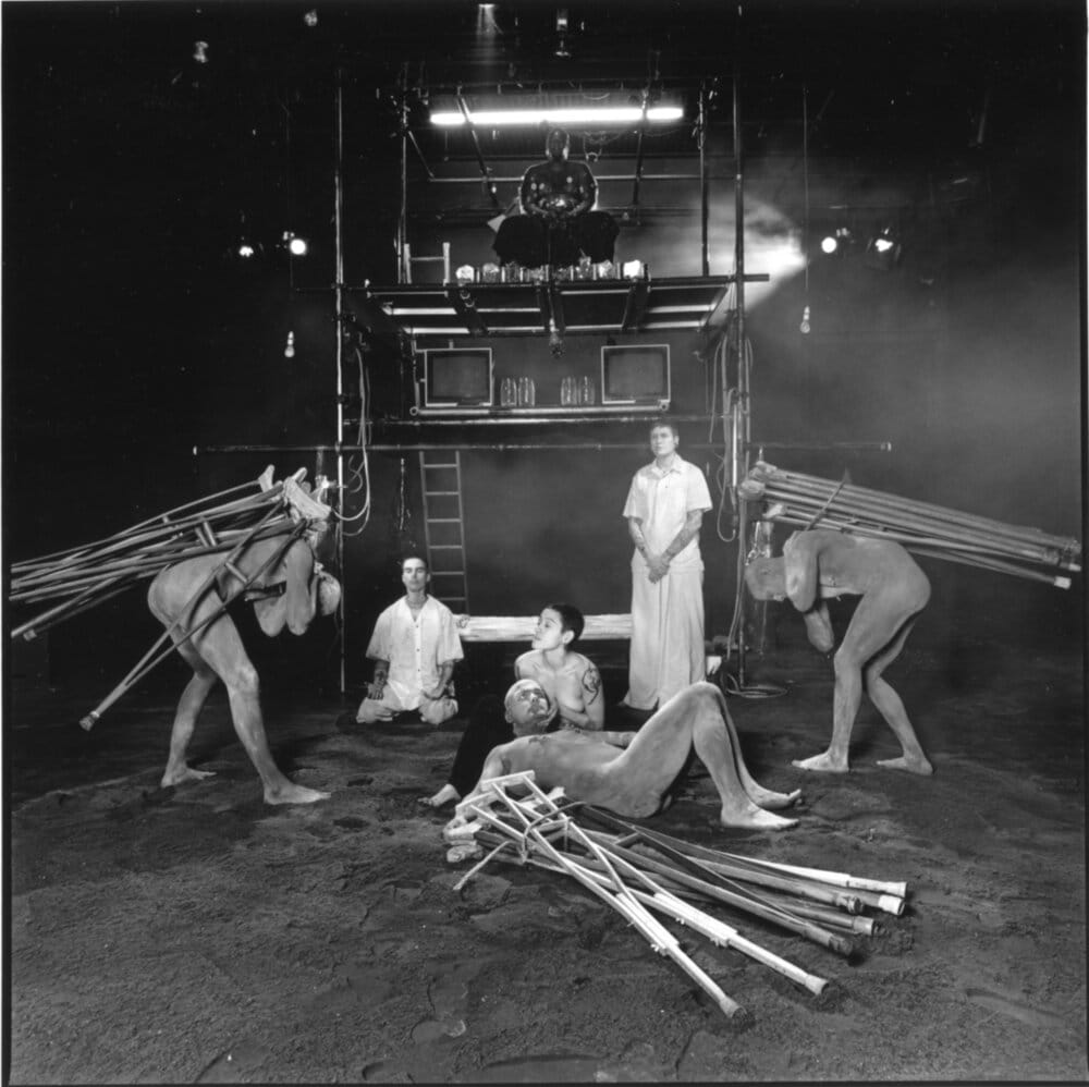 Despite his disinterest in shocking his audiences, controversy found Athey in March 1994 when he staged “Four Scenes in a Harsh Life” at Patrick’s Cabaret in Minneapolis. This was the middle portion of what he calls his “torture trilogy,” which addressed the AIDS crisis through masochistic ritual and religious imagery, “aligning HIV with plague in biblical terms,” he said of he trilogy’s first part, “Martyrs and Saints.”