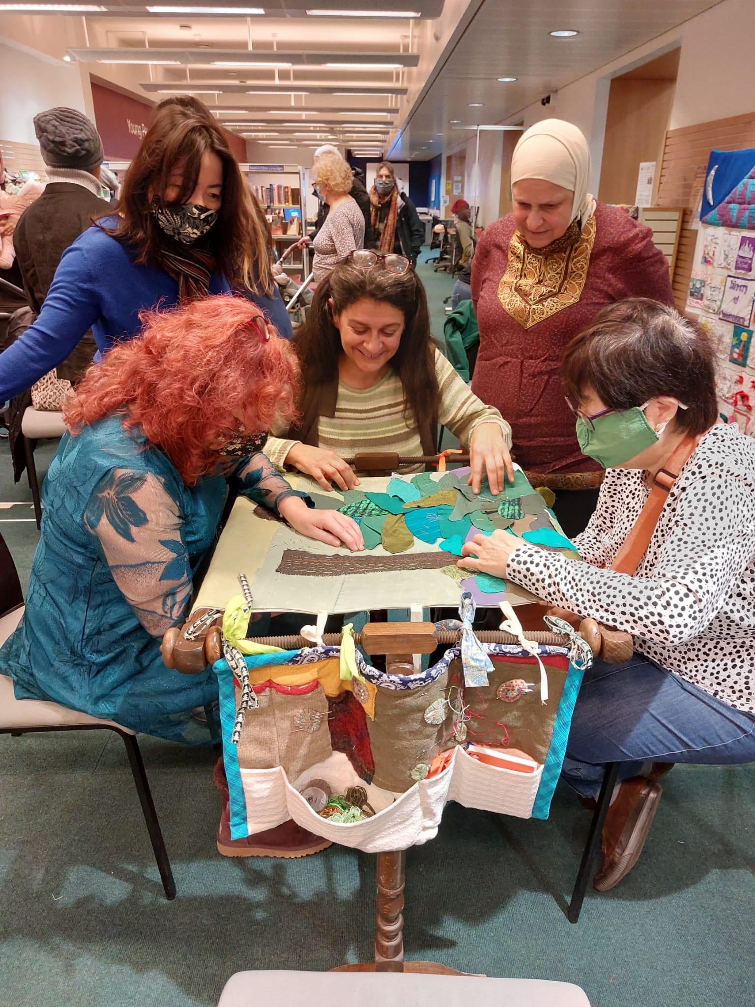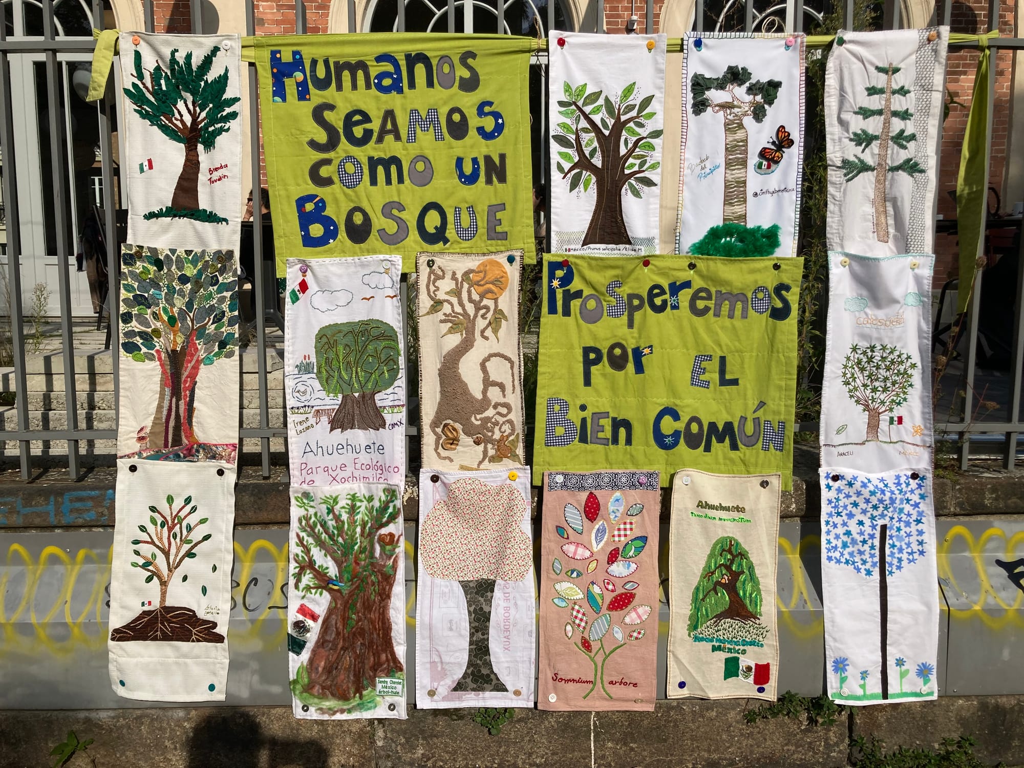 Founded by Dora Napolitano in 2016, Zurciendo el Planeta planted its "Forest of Hope" international embroidery project in art spaces across Glasgow during COP26.