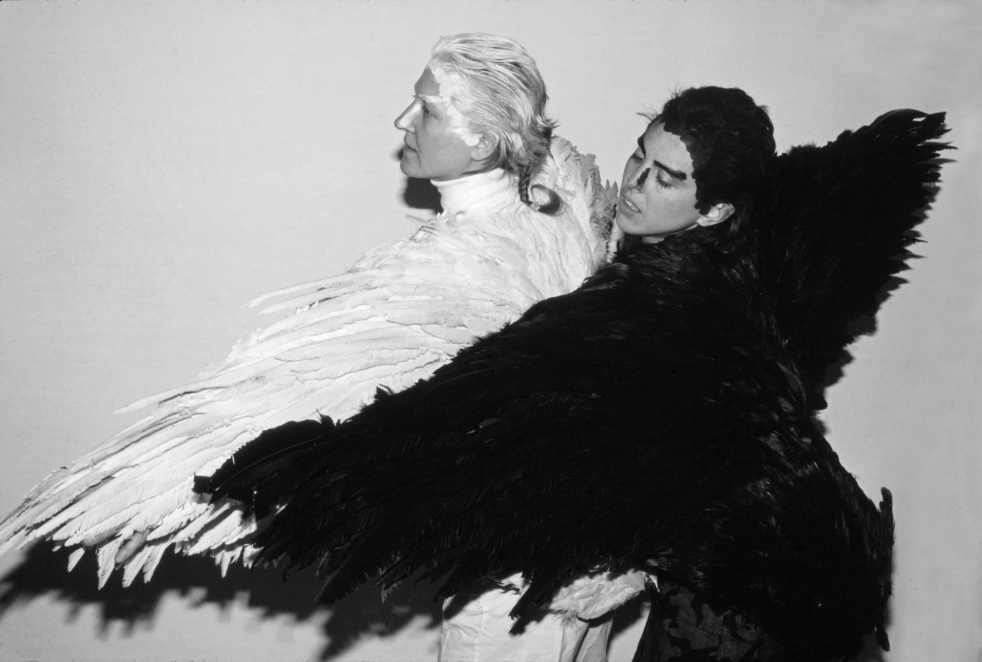 Curated by Monika Fabijanska, Betsy Damon —Passages: Rites and Rituals pulls Damon’s performance practice out from oblivion. Comprised of framed photographs, videos, and archival materials, the exhibition provides a comprehensive overview of eight performances that Damon executed between 1977–1986, as well as a series of intimate photographs, titled “Body Masks” (1976), that have never been exhibited before. Selected by Fabijanska from slides found in Damon’s personal archive, all of the framed prints on view were developed especially for the exhibition — a detail that speaks to the curatorial rigor of this show. Fabijanska first became aware of Damon when she was putting together her ecofeminism(s) exhibition, which took place at Thomas Erben gallery in Spring 2020. One of the highlights in this show was Damon’s large sculptural piece “The Memory of Clean Water”(1985), a 250-feet paper-pulp cast of a dried-up riverbed in Utah. It was this work, a literal portrait of our violence against nature, that triggered Damon’s transition away from the art world and into environmental activism.