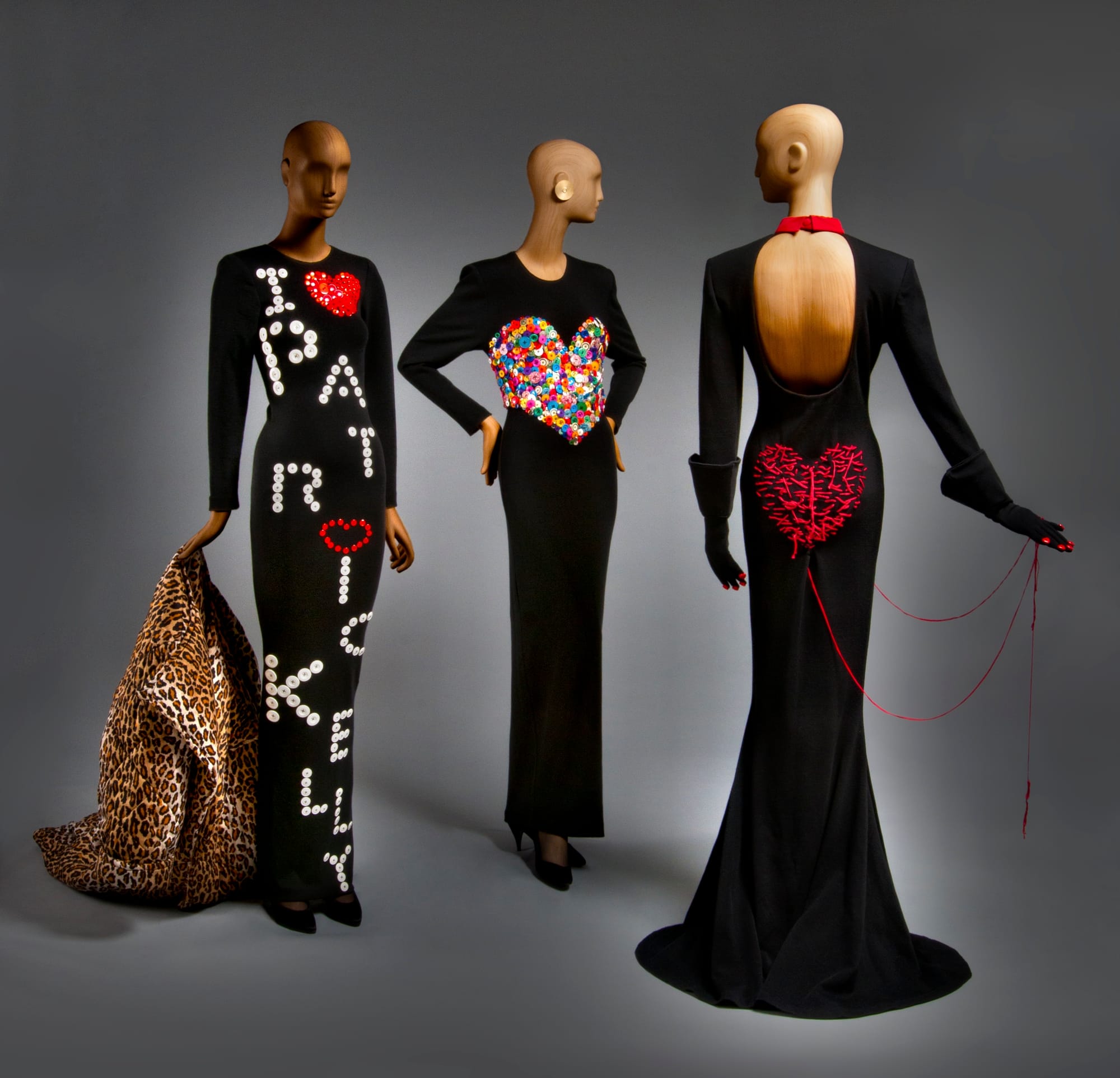 Woman’s Ensemble: Coat and Dress, fall/winter 1986; woman’s dress, fall/winter 1986; woman’s dress, fall/winter 1988; by Patrick Kelly (Philadelphia Museum of Art: Gift of Bjorn Guil Amelan and Bill T. Jones in honor of Monica Brown, 2015, image courtesy the Philadelphia Museum of Art)