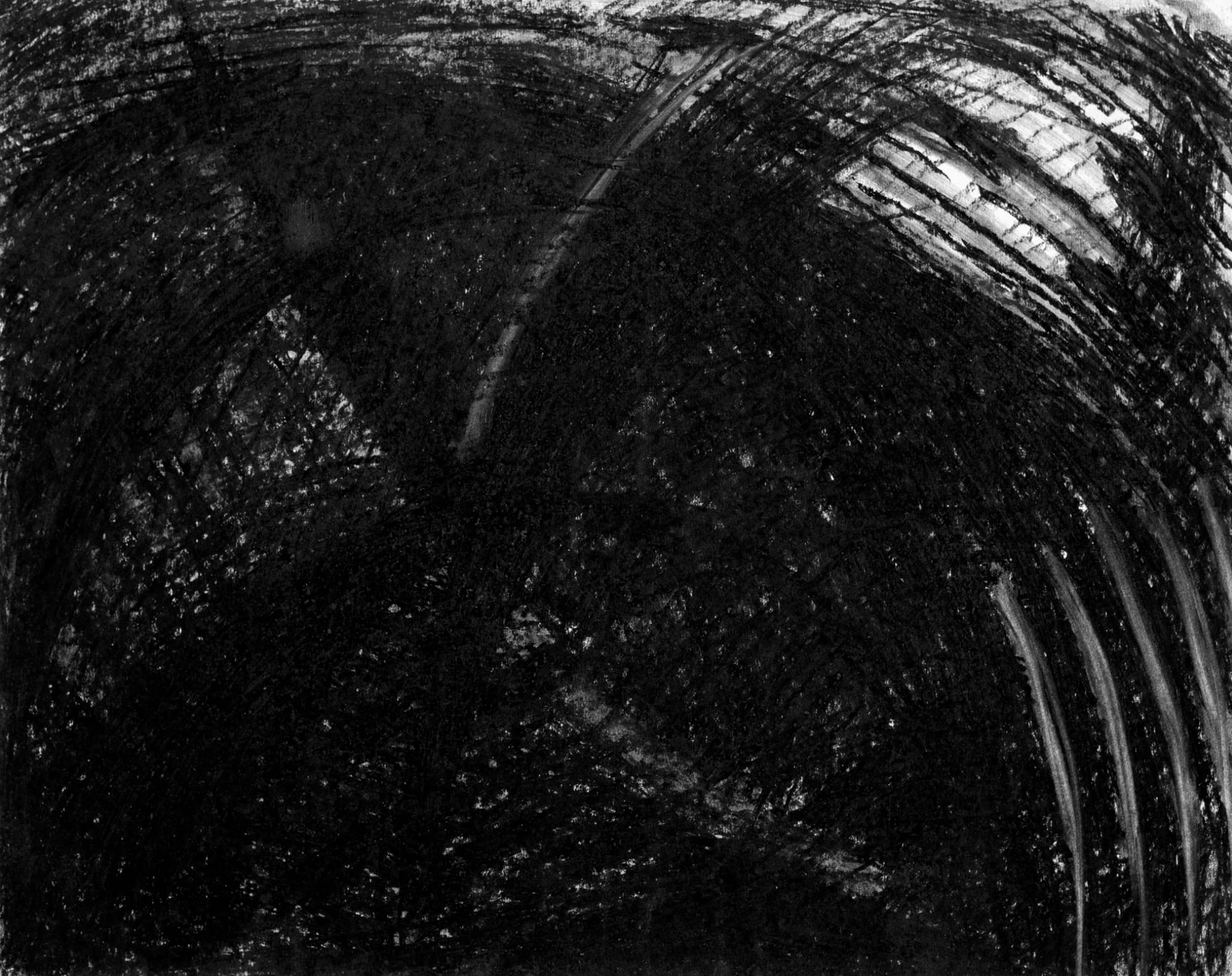 After attending two artist residencies in 1997, Edmonds began loosening up her practice, leaning into her improvisational impulses. “[I] took all the color out, took all the figuration out and just started from the ground up,” she said. Around that time, she created swirling charcoal works that announced her desire to reset and explore a different visual language. Here, the absence of figures pushes the viewer to notice the trembling line marks or the whirling energy contained between dark and light.