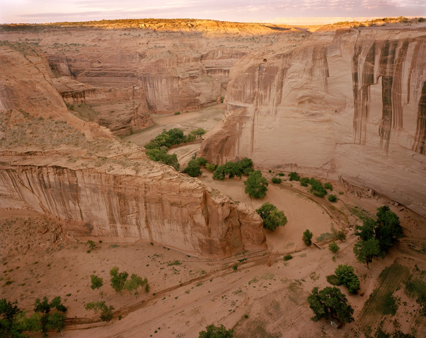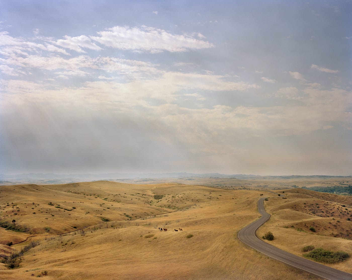 In Sherwin’s work, the tradition of landscape photography collides with notions of the US road trip narrative. There are people who take to the road to see the country by way of its current inhabitants, and people who do so by avoiding the living and seeking the spaces that still hold a sense of emptiness that suggests what once was. It would have taken a prescient member of the Meškwahki.aša.hina (Fox) tribe, the original occupants of the place where my house sits today, to see the view as I see it out my window. But there are places in the woods, or the sweeping vistas of the Southwest, where I can imagine I am looking at a panorama just as it appeared to someone who lived there 1,000 years ago. Tree time dwarfs us humans, and geologic time makes motes of us all.