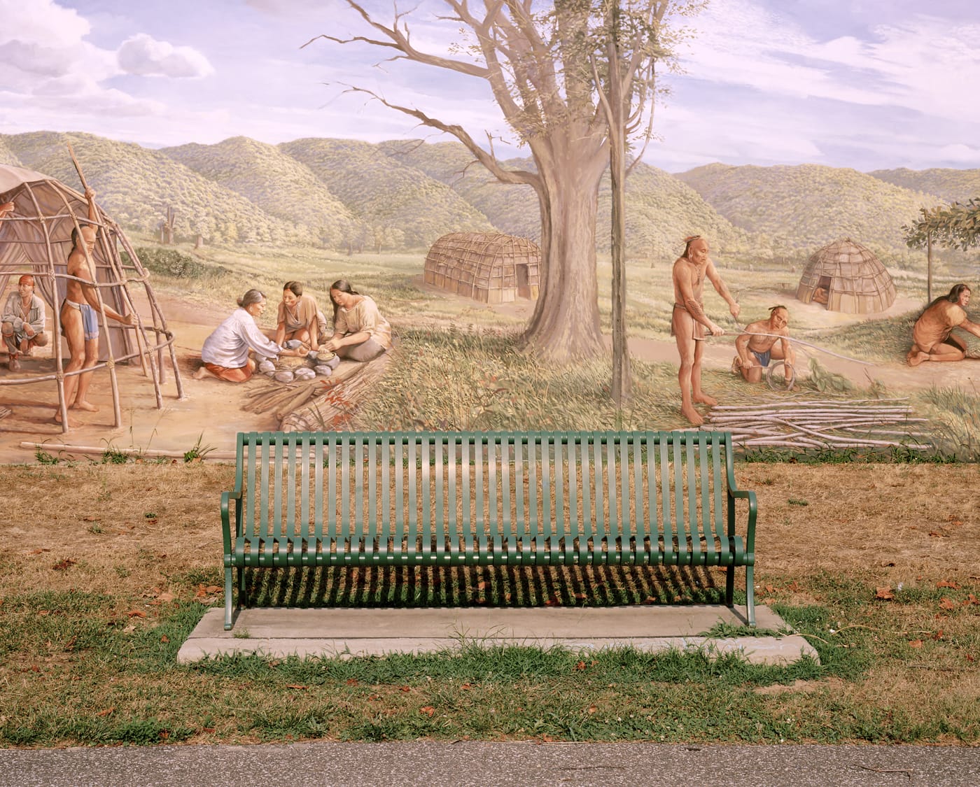 Sherwin has a canny eye for these glimpses between the lines of history, at turns reverent and humorous. A sweeping playa punctuated by jutting mesa, then a wrought iron bench in front of a mural of Native American villagers building huts, then an empty pint of sour apple liquor under the brand Johnny Bootlegger, then a small hill — maybe a midden mound? — then a dead goose fallen by a curb at water’s edge, a dead fox on a rural roadway, a little bit of charcoal. A tiny spray of wild orchids. A parking lot. The poetics of Sherwin’s cultural study unfold slowly and powerfully, until everything gels into a tapestry of collective meaning. This, I suspect, is longue durée, and the investment made by Sherwin in assembling this evidence is not only singular and powerful, but an invitation and reminder that any one of us is part of that slow movement through history and possesses the potential to frame it, and in doing so, change it.
