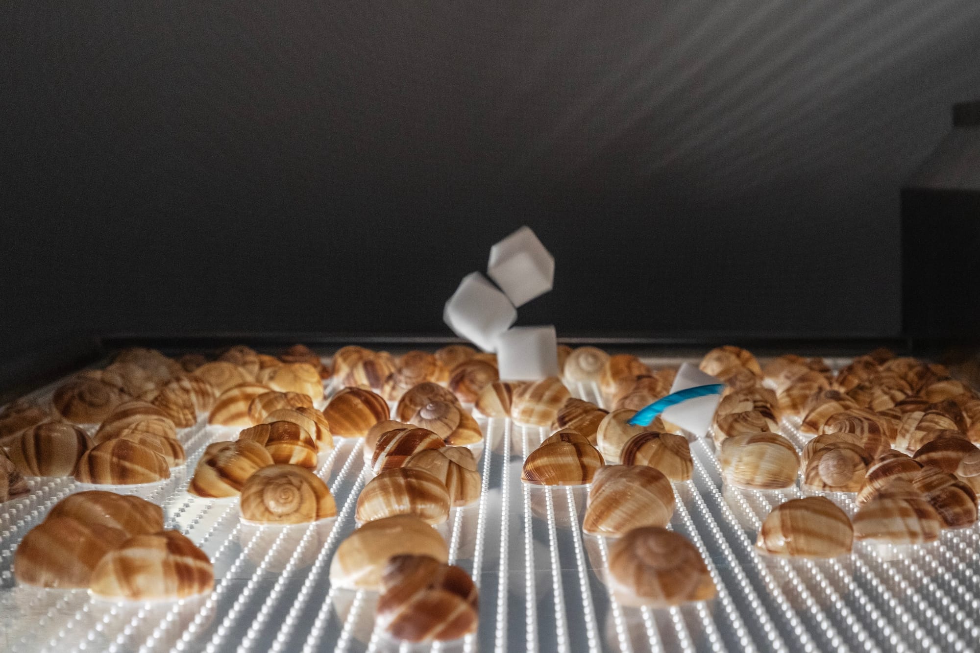 I’ve long been a fan of Mr. Clean’s Magic Eraser. There’s virtually no blotch or blemish this mysterious sponge cannot undo. In Aki Sasamoto’s solo exhibition, partially based on her installation at the 2022 Venice Biennale, you’ll encounter a playful assortment of Magic Erasers, snail shells, water bottle caps, kitchen cutting boards, and other objects performing a dance over industrial sinks. Through this quirky ensemble, Sasamoto reflects on our fragile existence in this mad world, and her little place in it. The exhibition and an accompanying series of performances by the artist will put a smile on your face, but don’t be surprised if a contemplative mood slowly sets in, making you wish a Magic Eraser existed for past mistakes and poor choices. —Hakim Bishara