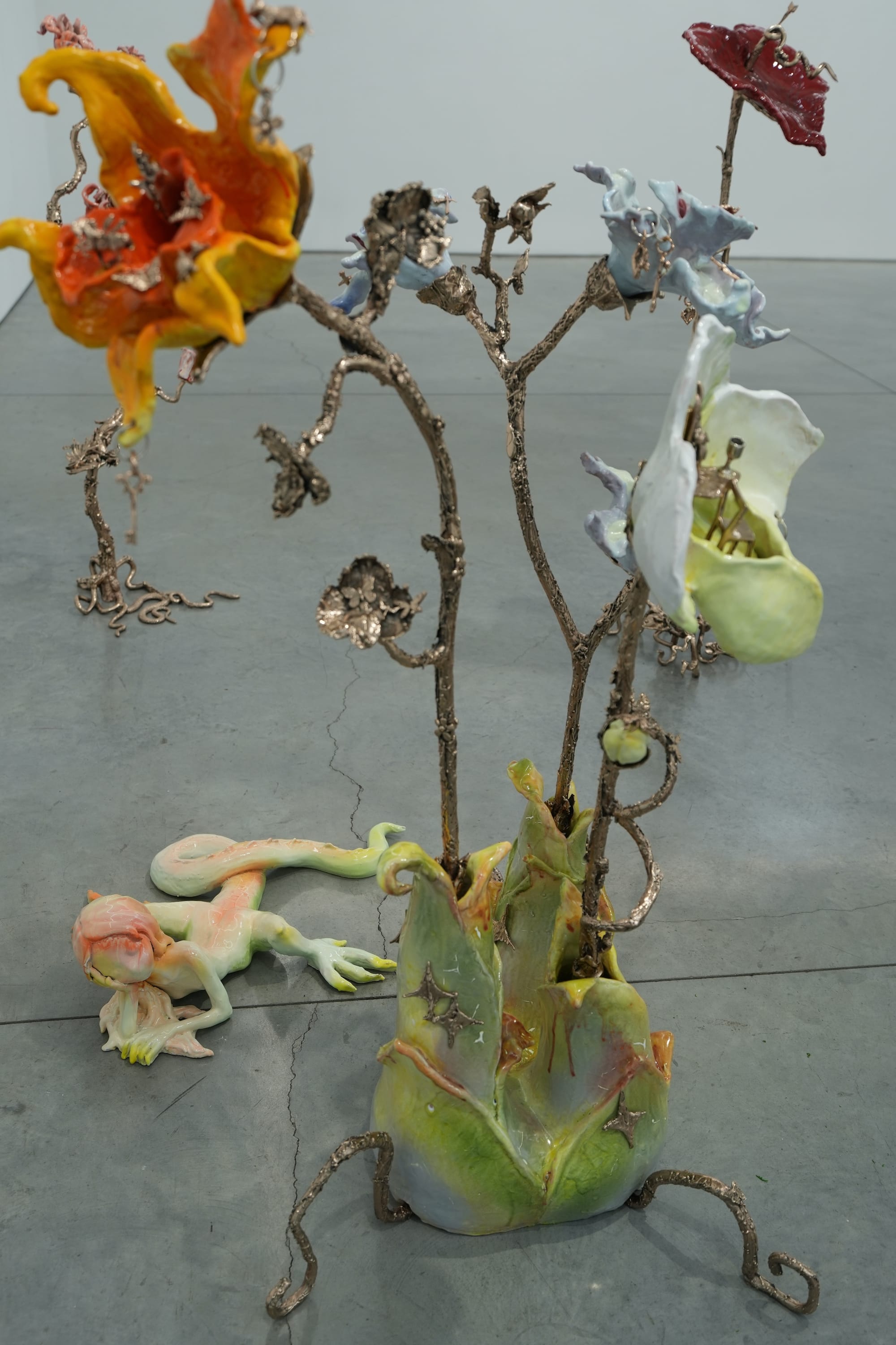 A charming display of ceramic and bronze sculptures that feel as whimsical as a drawing, but as complex as a vivid dream. The artworks sprout from the gallery’s polished concrete floors, accompanied by an eerie soundtrack of pop songs about flowers warped into something more bewildering. There’s a deeply romantic dimension to Broche’s vision on display and the wistful figures don’t feel contemporary, but instead like historical or fictional spirits conjured up before us, even if only momentarily. The title for the show is taken from Frances Hodgson Burnett’s 1911 children’s book The Secret Garden, and that sense of wonderment, tinged with fragility, is laid bare in this scene, which appears to be on the verge of collapse. —HV
