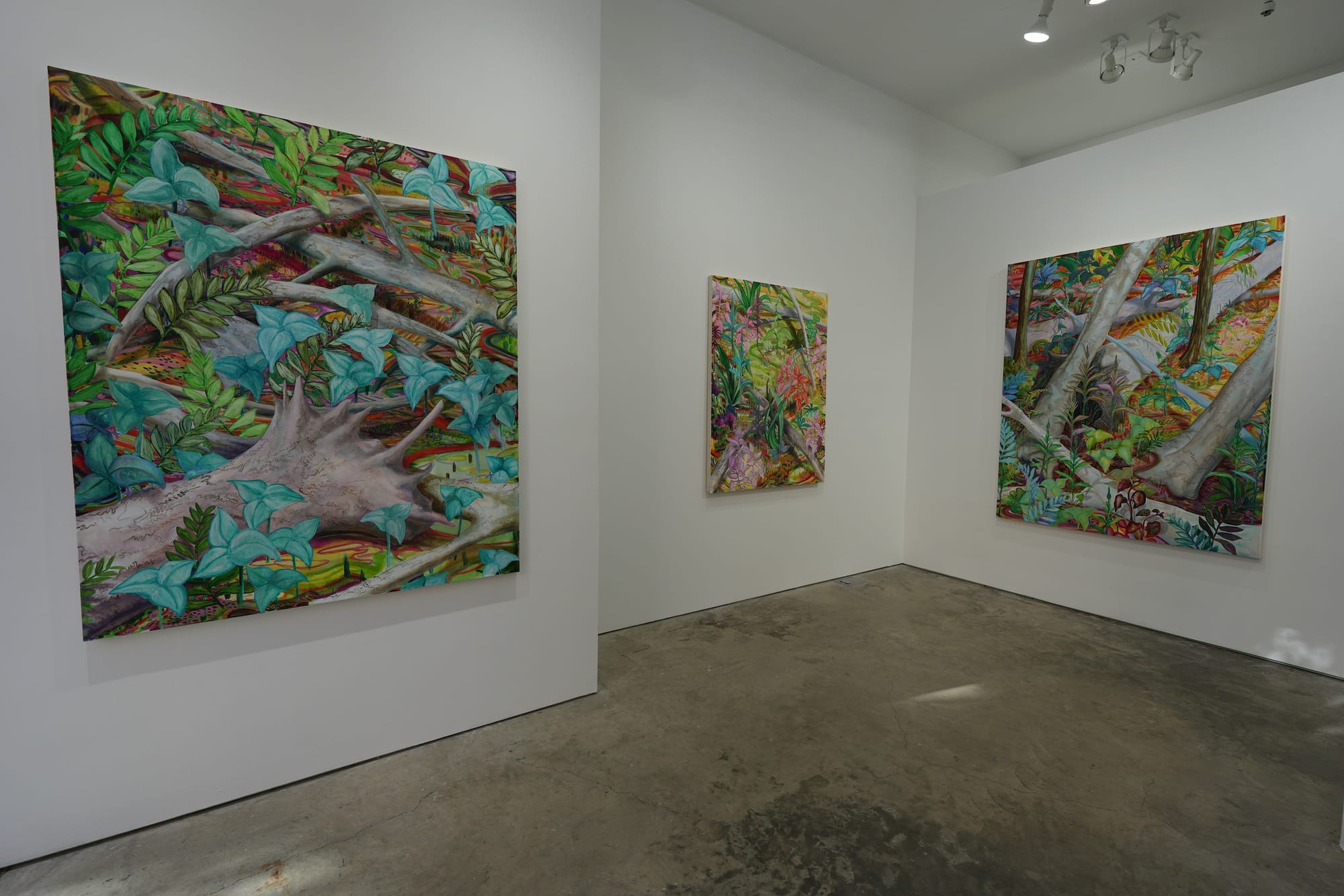 This small exhibition on West 22nd Street is jammed with vibrant artworks that are, according to the artist, built through improvisation — though that’s hard to discern as a viewer. Focused on forest floors and their layers of vegetation, Kurt Lightner renders the plant world in a kaleidoscope of color. Lightner’s keen ability to capture each branch, leaf, and plant in a way that maintains its elegant individuality without succumbing to the chaos all around is visually impressive. Life and death intermingle freely (though there are no signs of animal life from what I could see) and the results are these dense, almost transparent surfaces that call attention to the overlooked and ask us to find the vibrancy beneath our feet. —HV