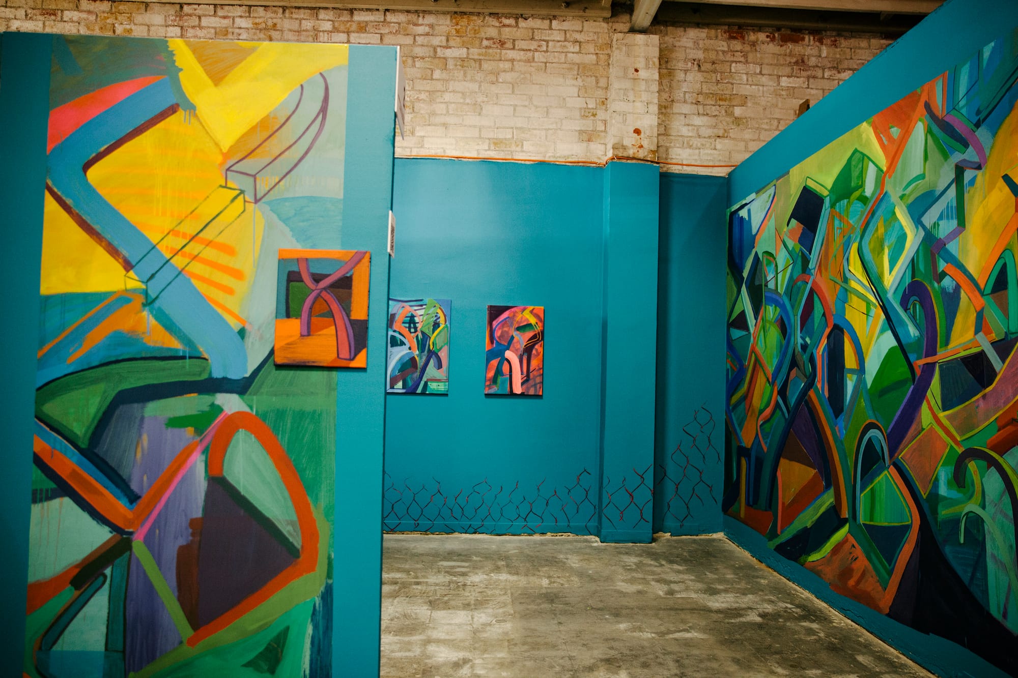 Meg Lionel Murphy, an artist based in Wisconsin, created a room of medieval-inspired paintings, but instead of the Eurocentric themes, the narratives center women as larger-than-life heroes with swords, mythical deities, and feminist allegorical figures. At the center of the room lies an altar for these beings.