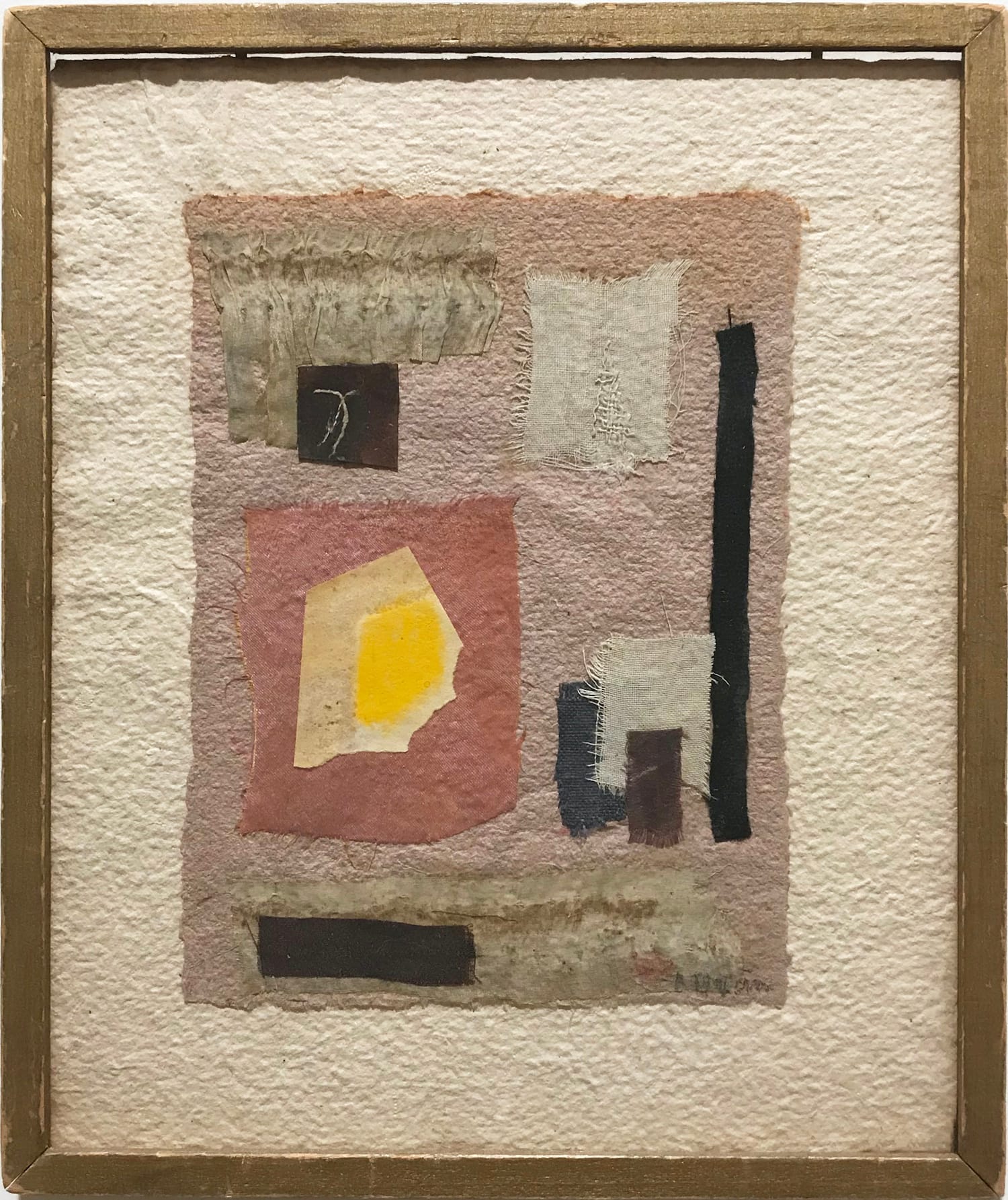 The collages’ understated alterations in color, tone, and granularity produce visible correspondences to subliminal and melancholic states, approximating psychological epiphanies through that refined, calibrated imagery. In this regard, these rigorously compressed collages call to mind the attenuated, philosophically charged verse of American poets like Emily Dickinson and H.D. (Hilda Doolittle) as much as they do the energies of Cubists and Abstract Expressionists.