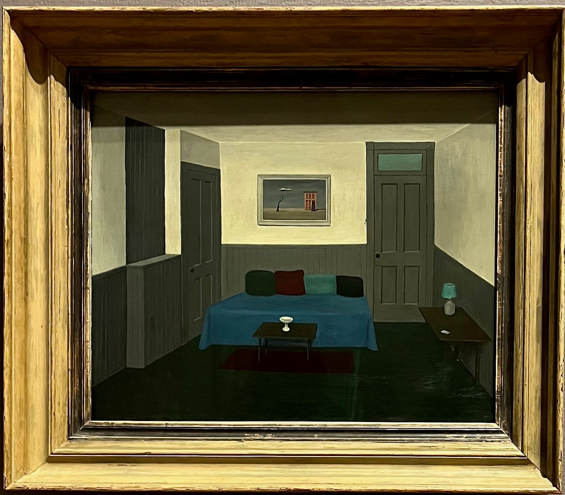 This new setting, where it is flanked by oil paintings by the (woman) artist Gertrude Abercrombie to the left and the (Black) artist Hughie Lee-Smith to the right, seeks to undermine the “art system,” as Reilly puts it, as “an hegemony that privileges white male creativity to the exclusion of all Other artists.”