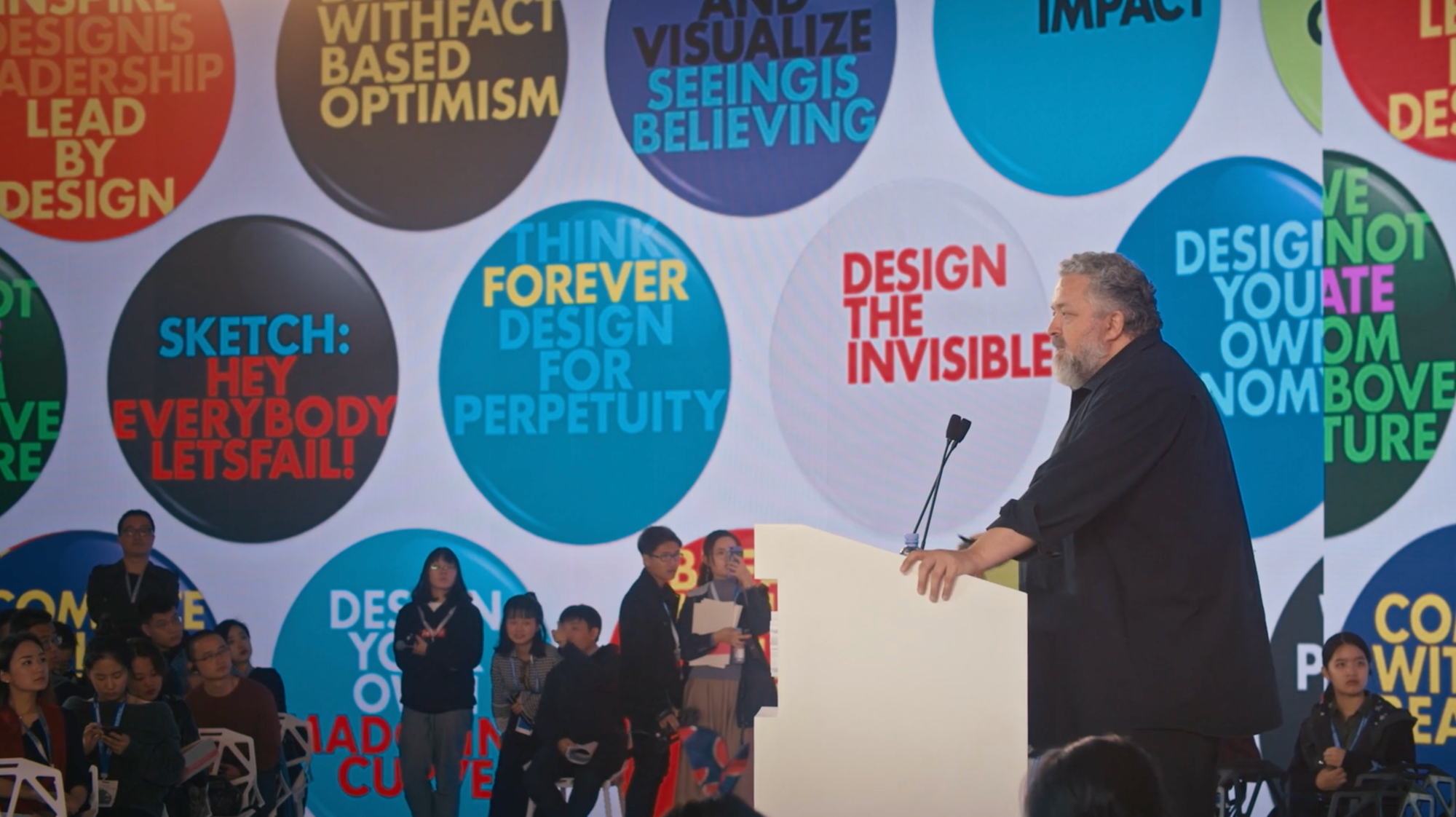 After being disappointed when his 2004 Vancouver exhibition Massive Change: The Future of Global Design failed to galvanize visitors into action (whatever that means,) Mau decided to launch a follow-up exhibition in 2019 in China, titled Massive Action. What is "massive action," exactly? As he puts it, “It’s about what we’re capable of together […] when people come together and decide to change things, the power of that is really unmatched.” I don’t know what that means, and the film never supplements this explanation. We’ll never find out, in any case — amid diplomatic tensions between Canada and China, Massive Action was scrapped. MAU is too charmed by its subject to nail down what he does, or why people should even care about him in the first place.