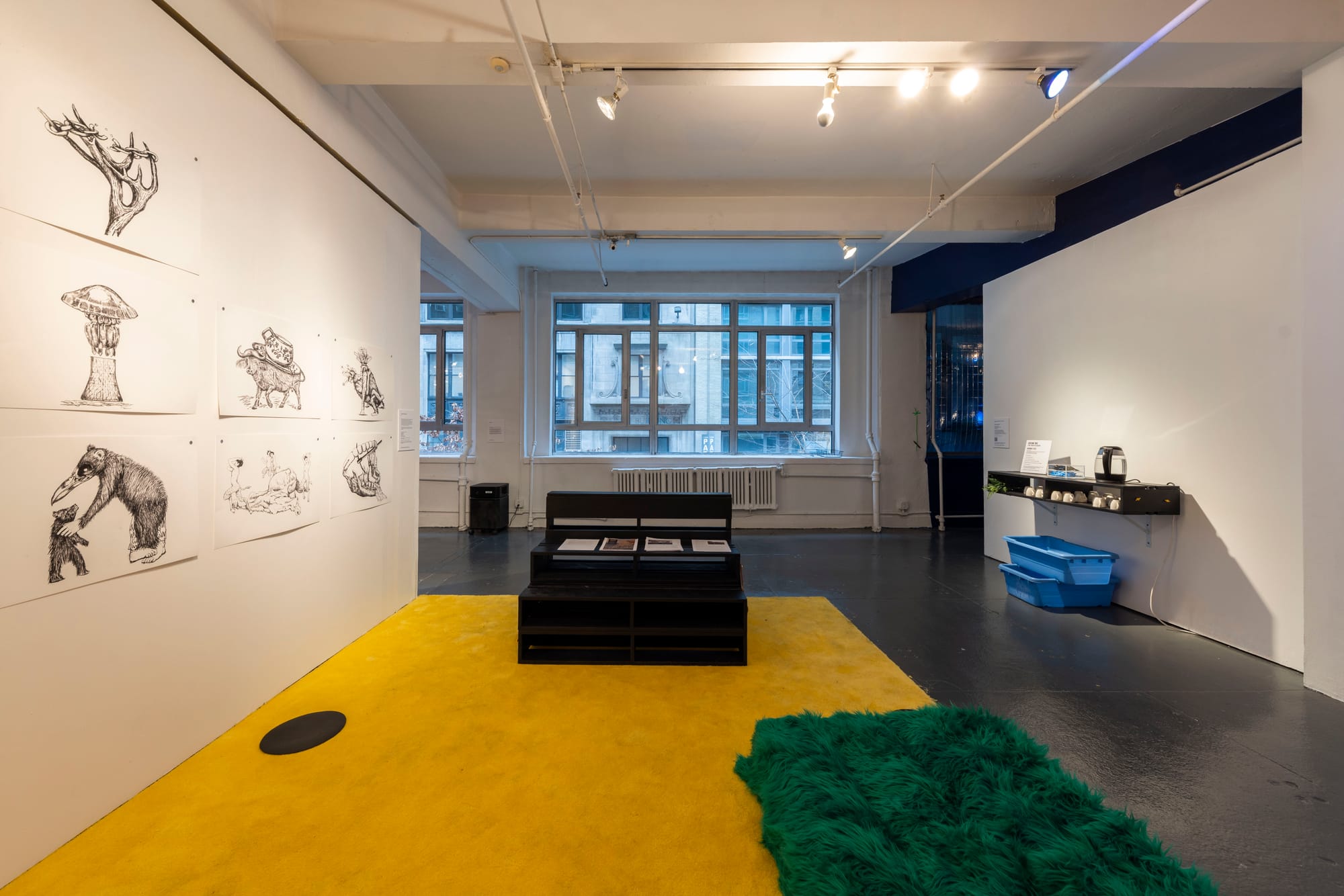 Sprout Hinge Nap Wobble continues at EFA Project Space (323 West 39th Street, Garment District, Manhattan) through May 14. The exhibition was curated by Dylan Gauthier, Radhika Subramaniam, and Marina Zurkow.