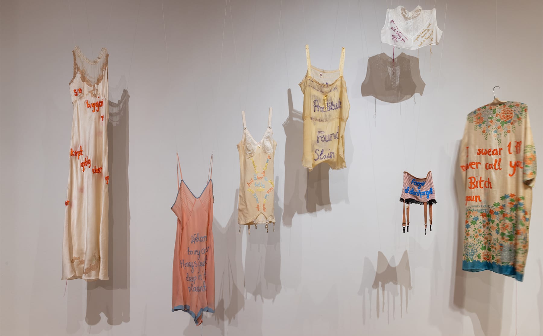 An installation of Zoe Buckman's embroidered vintage lingerie (photo by Jenna Bascom)