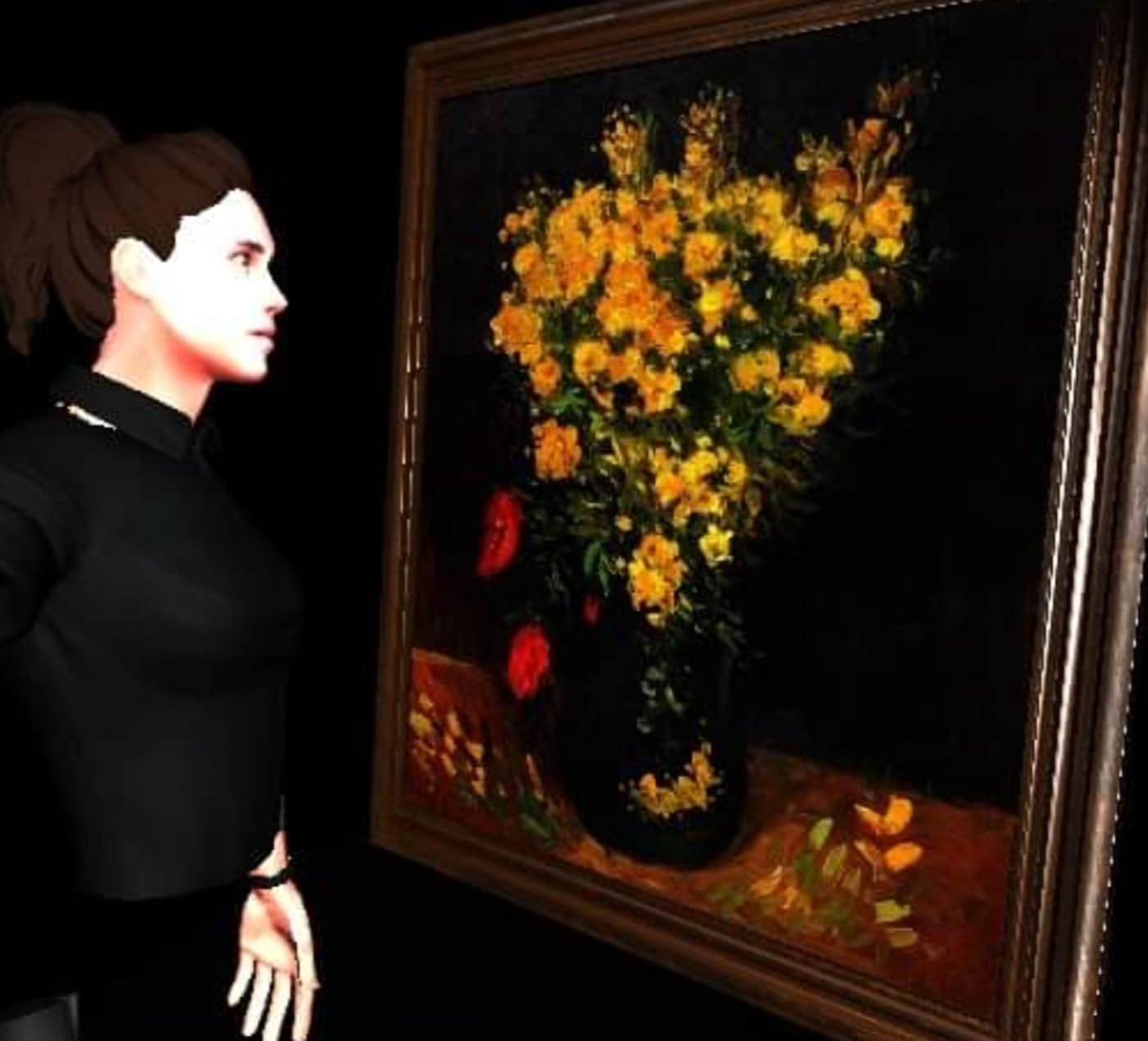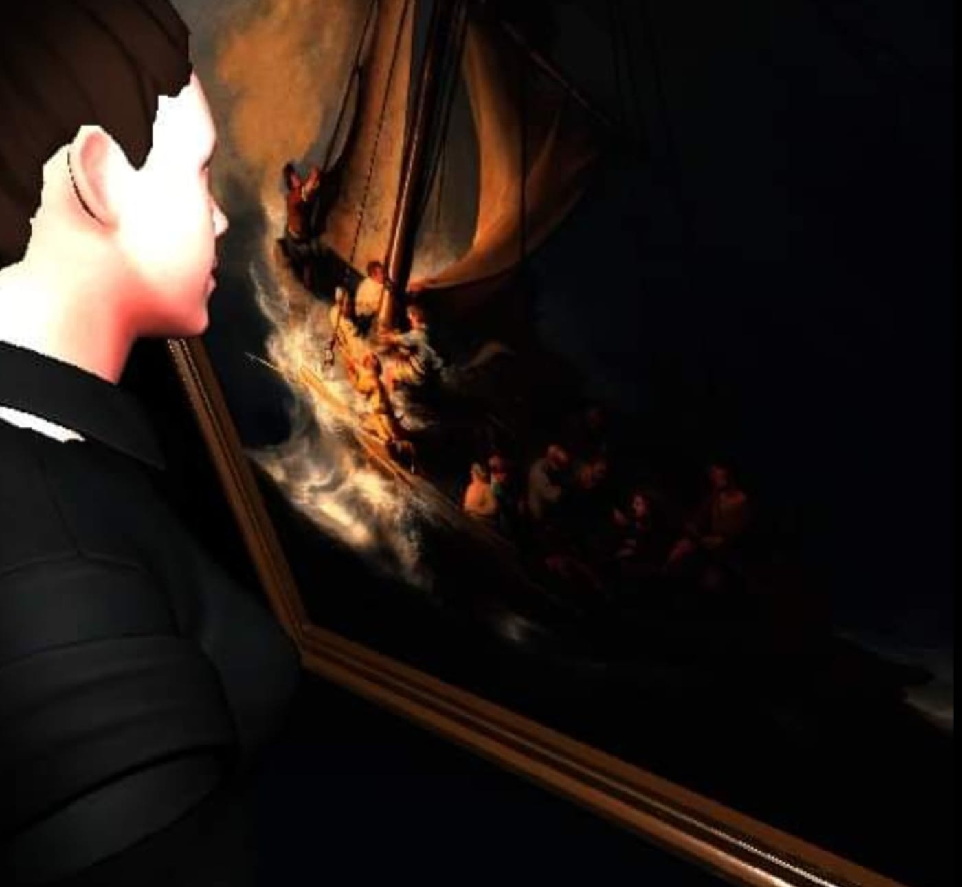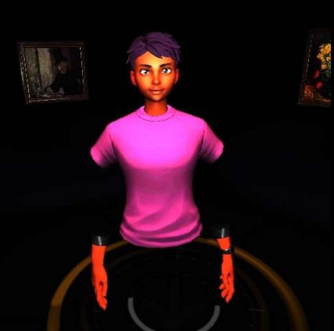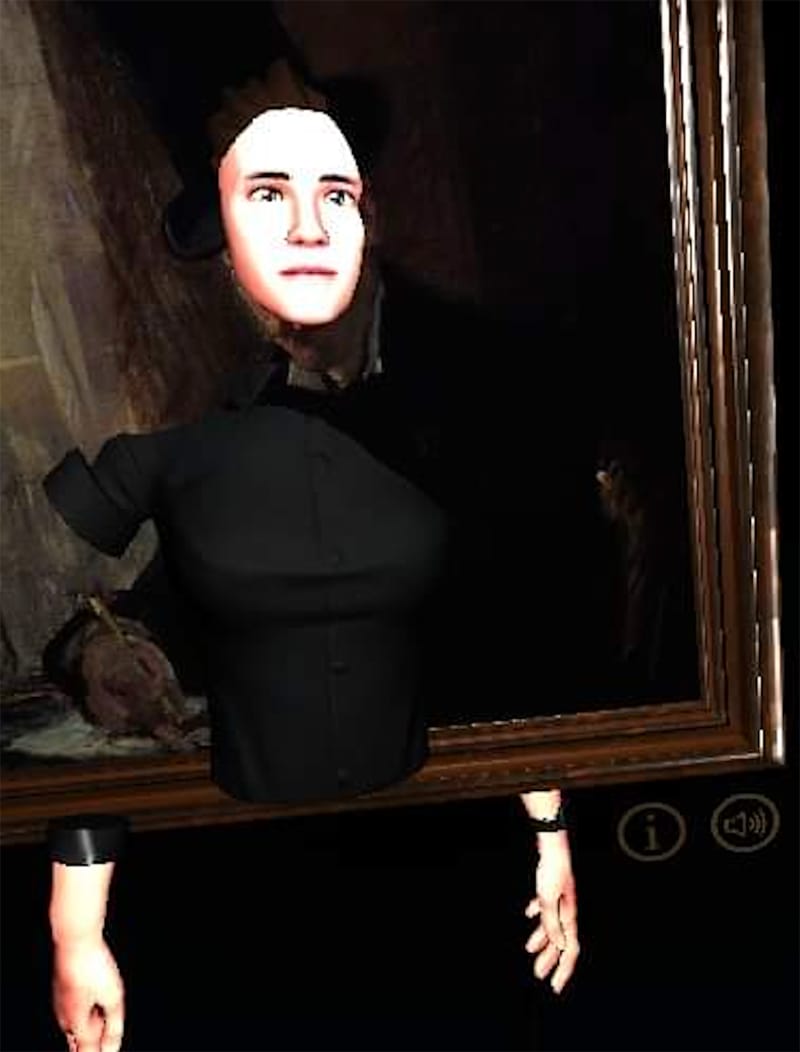 It is mostly dark in the Stolen Art Gallery, with a night sky above punctured by twin skylights that passively illuminate the room. You can’t see the walls, because there are no walls. You can’t see your feet, because you have no feet. All you can see, aside from an orientation pad in the middle of the gallery, is a semi-circle of five paintings floating in black space. They aren’t there either, of course. They were all stolen decades ago.