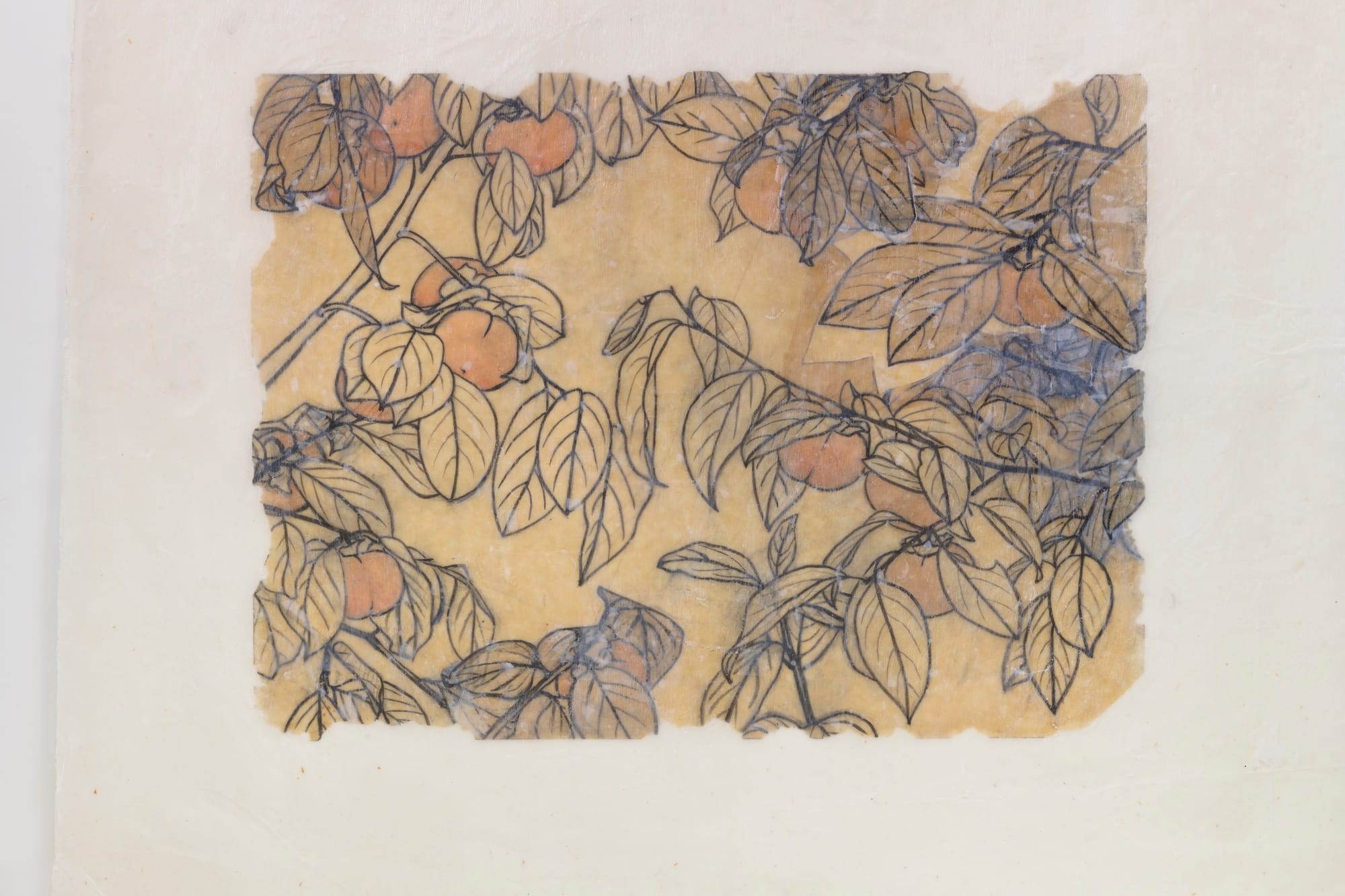Aram Han Sifuentes starts personal: The first artwork to the right is an ink drawing of persimmons by her mother Younghye Han, an immigrant from South Korea. In the accompanying text, she writes that though her mother dreamed of being an artist, upon immigrating to America she instead found work as a seamstress and taught a young Han Sifuentes how to sew because "it’s useful." The simultaneous gift and sacrifice offered by her mother both color and contextualize the themes surveyed around the invisibilized and gendered labor of immigrant women throughout the entire exhibition — herself included.
