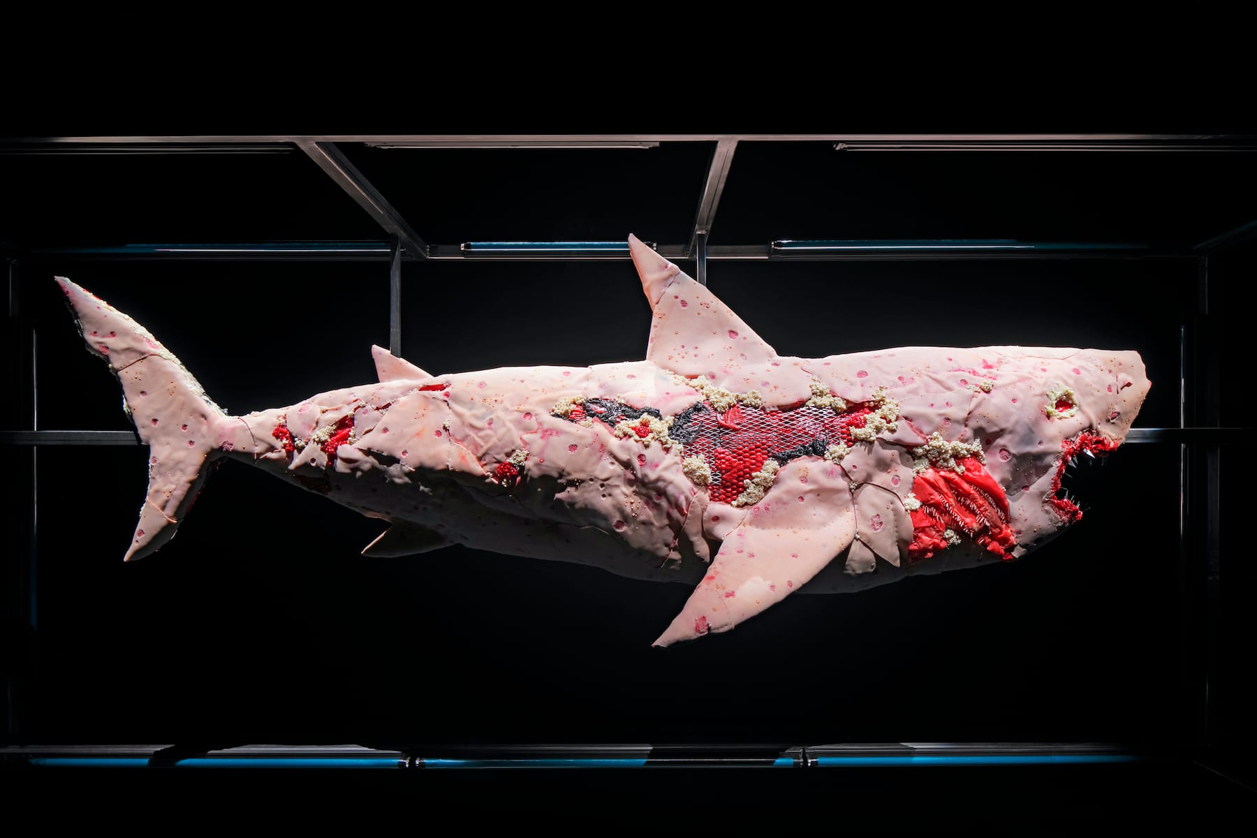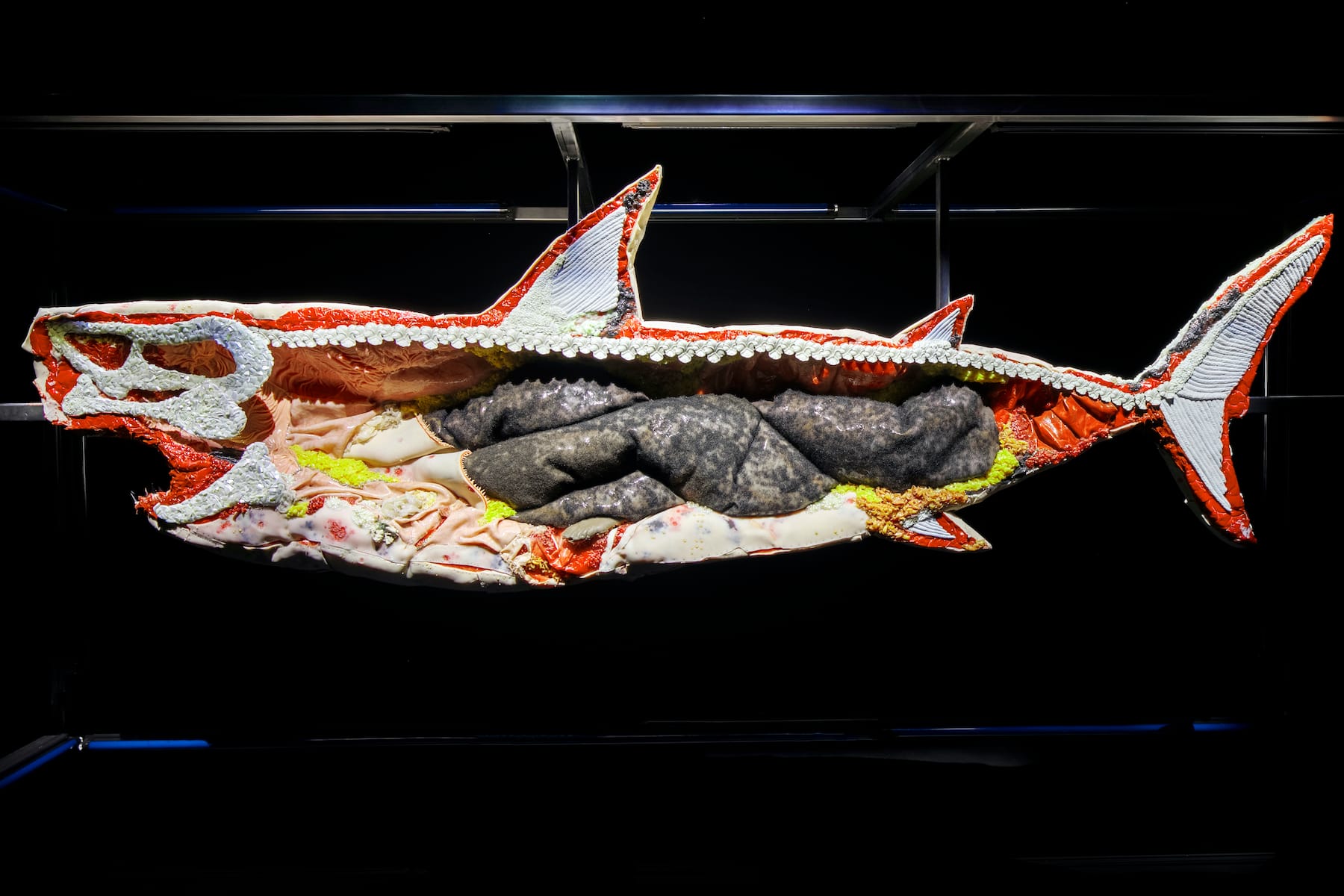 Speaking with Garner at the exhibition, she explained how sharks were used as means of torture and control on slave ships: "they would tie people up in ropes and dunk them in the water, and the sharks would tear their bodies apart. They would do this publicly to discourage Black people still on the boat from jumping overboard because that would also be a business loss for them."