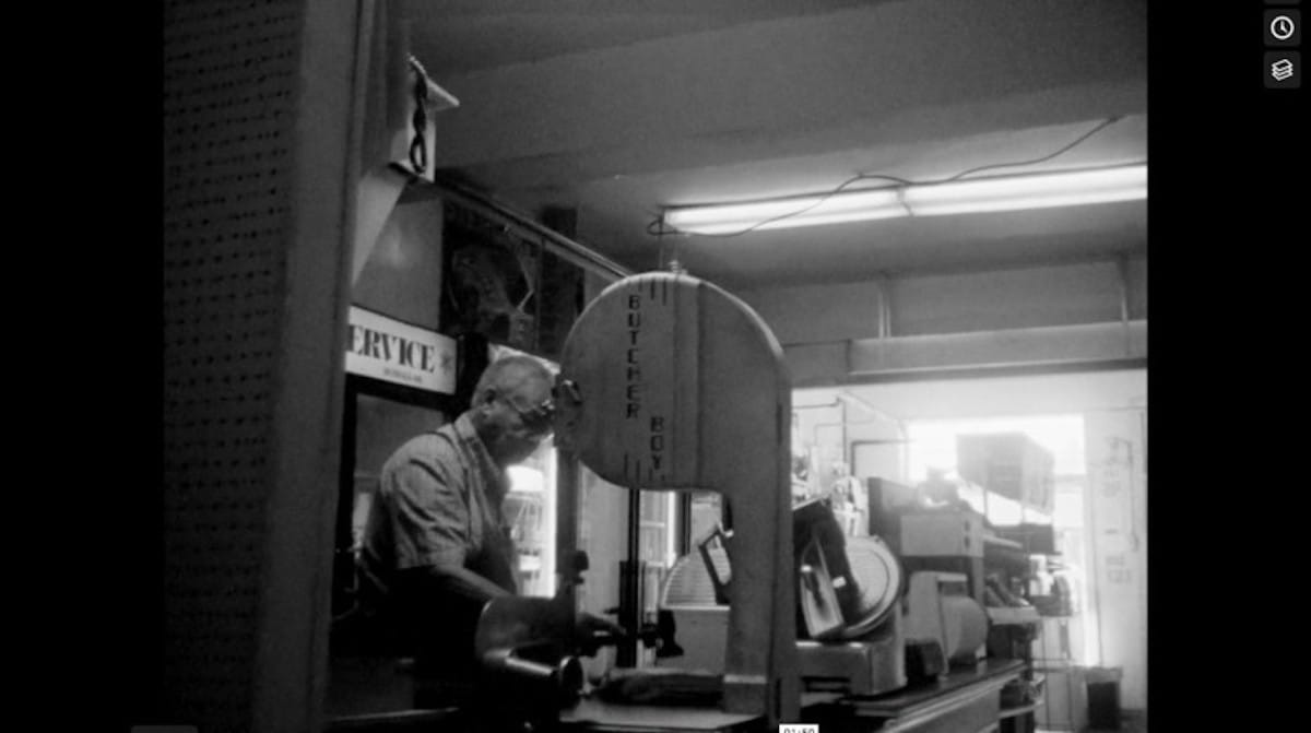Filling an absence, reclaiming a memory, and layering spaces are all part of Kevin Jerome Everson’s very short 16mm silent film Weidle’s. As the filmmaker remembers a deli from his hometown of Mansfield, Ohio, he uses the film to transpose it to a modern-day Charlottesville butcher, George H. Swingler, embodying his reminisces in Swingler’s physicality as he hammers meat. Brit Hensel’s short ᎤᏕᏲᏅ (What They’ve Been Taught) also toys with time and liminality, questioning our conception of time as finite and linear. In the film, she listens to Cherokee Nation elder Thomas Belt explaining the idea of an eternal culture of reciprocity, which defines the worldview she aspires to live for. It is through a balance of receiving and providing that Cherokee people define time — a conscious blurring of the familiar markers of development, success, and consumption by which people measure their lives.