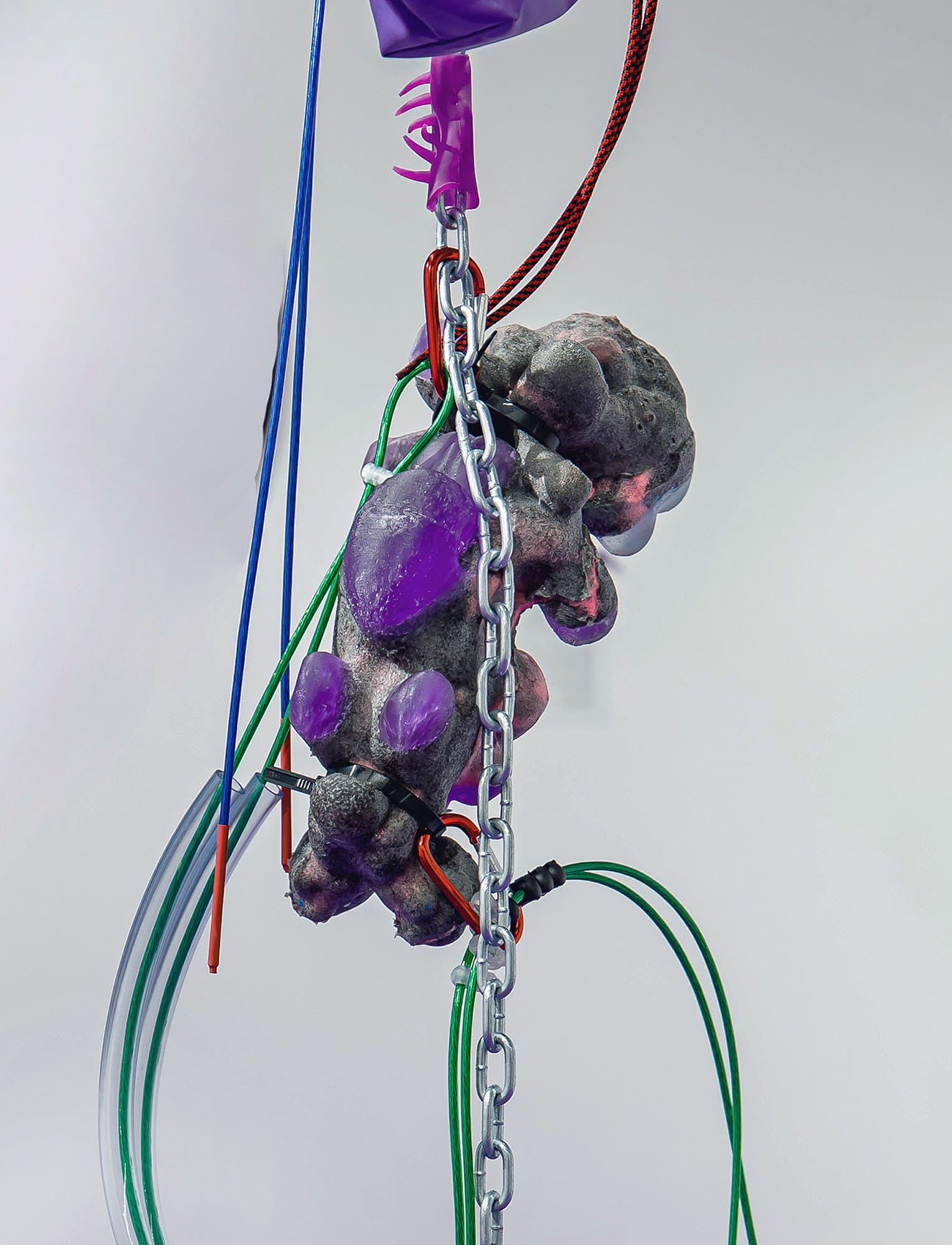Kopenkina shows that Russian culture is not monolithic by including works by queer contemporaries. Hagra’s visual novel Evening with the Bros (2017) allows viewers to choose their own adventure in a story of cisgender male and transmasculine workers supporting each other, one of which is a threesome affirming their affinity. In a highly colorful installation by German Lavrovsky, pink beanbag chairs flank a 3D silicone genderless baby hanging on a harness, whom visitors are encouraged to handle and embrace. Kopenkina positions this alongside a video of Angela Beallor discussing the meaning of queer parenthood, adapted from the banned Soviet play I Want a Baby.