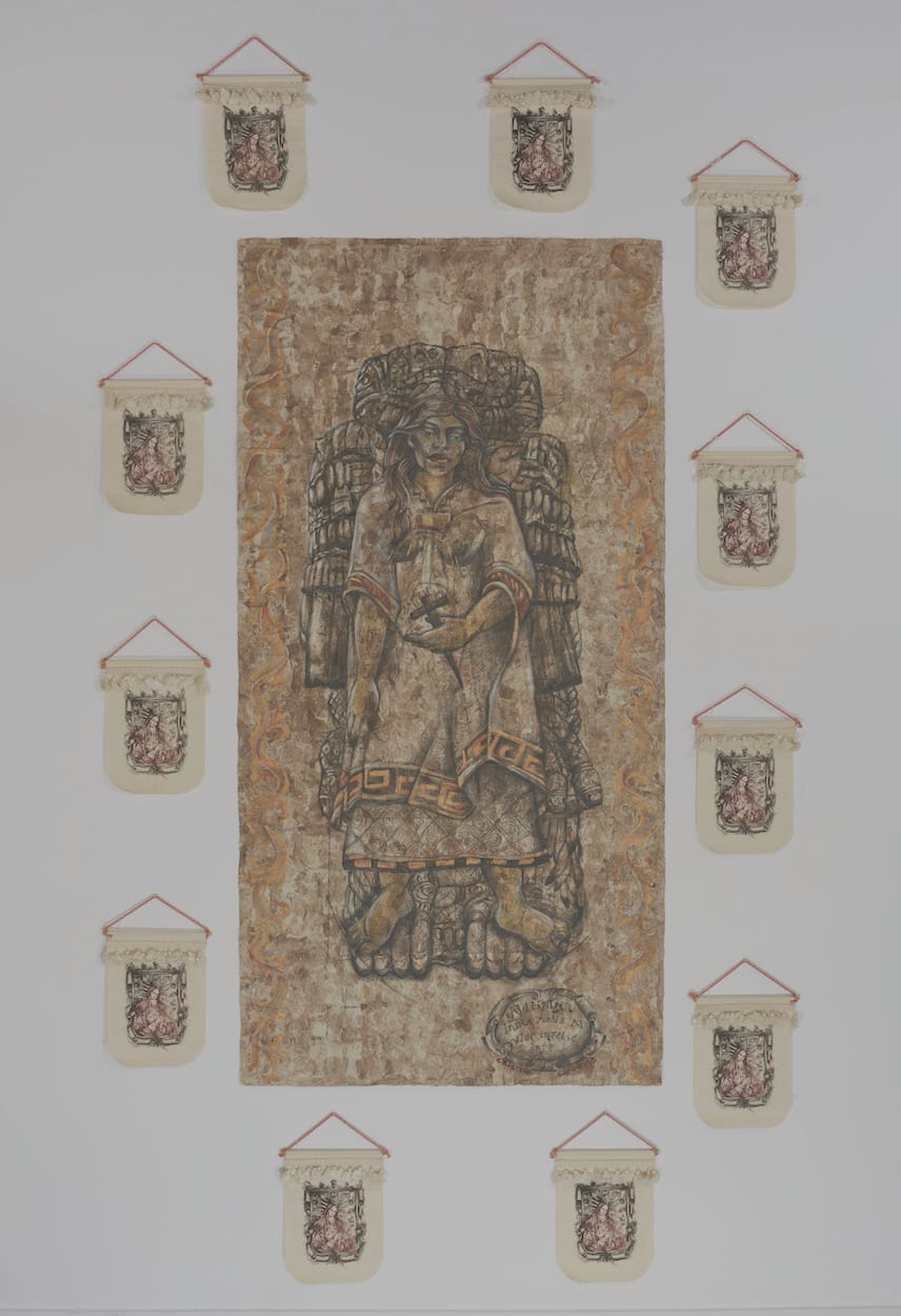 Rodriguez’s work outlines historical and contemporary violence against Indigenous women, shedding light on the continual silencing of the topic. She draws tension between Malinche’s story — one that men manipulated across history — and the stories of women removed from current history. The exhibition makes space to confront and critique the continued appropriation of Malinche and the cultural tensions established within it.