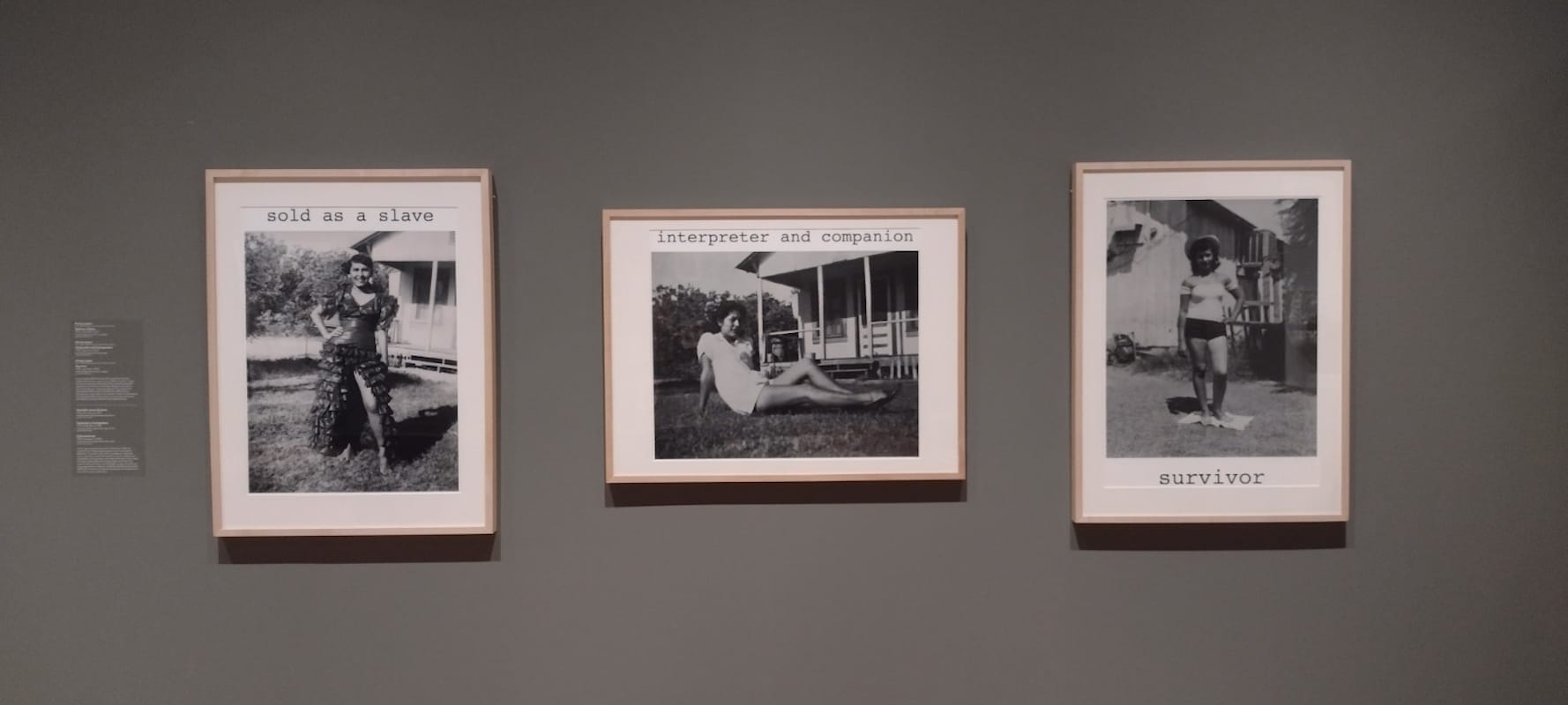 Other artworks in the “Chicana” section shed light on the emotional strains caused by reclaiming Malinche’s story. Themes such as the intersection of cross-cultural references in Cristina Cárdena’s installation, “Malinche, Coatlicue, y Virgen de los Remedios” (1992), or challenging gendered politics through Annie Lopez’s photographs, “Sold as a Slave,” “Interpreter and Companion,” and “Survivor” (1995), are standouts.