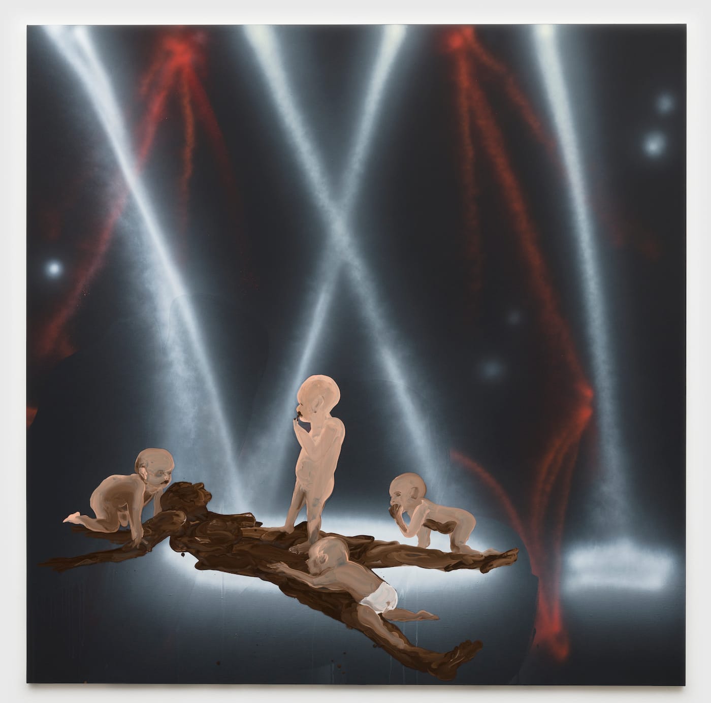 Tala Madani’s cast of anonymous, average White men act like babies. They smear their feces, vomit on each other, and run around in the nude. More than simply cheekily transgressive celebrations of the abject, Madani's painting confront cultural taboos and entrenched power structures, embedding feminist critique within painterly delights. Biscuits is the Iran-born, LA-based artist's first North American survey exhibition.