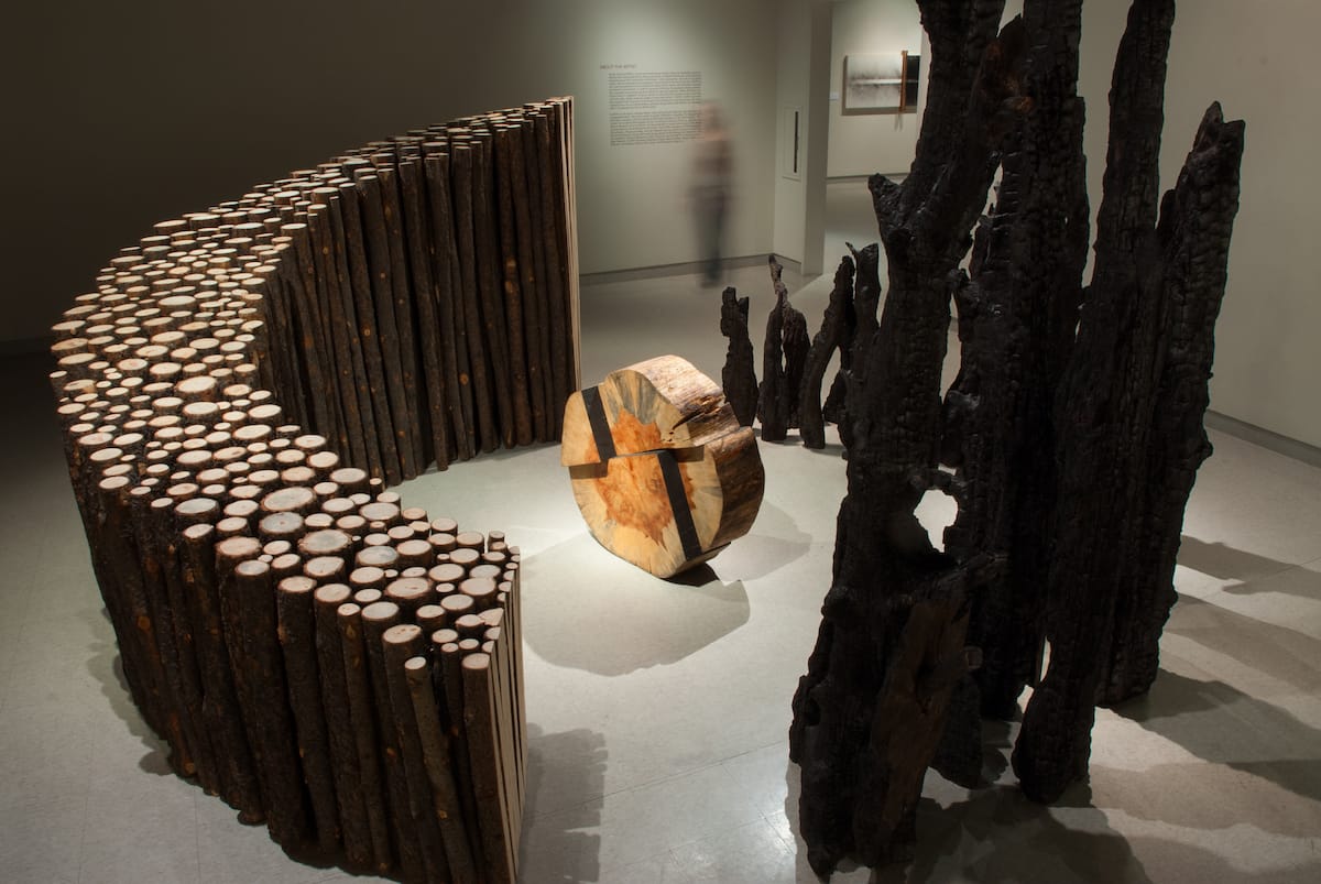 “The main exhibition goal of the scientists and fire ecologists was to educate the public about the value of fire, but my main focus was aesthetics and presenting forms the public wasn’t used to seeing,” recalls Skabelund. “I really wanted the artists to go outside their comfort zone and think beyond the mediums they were used to working with.”