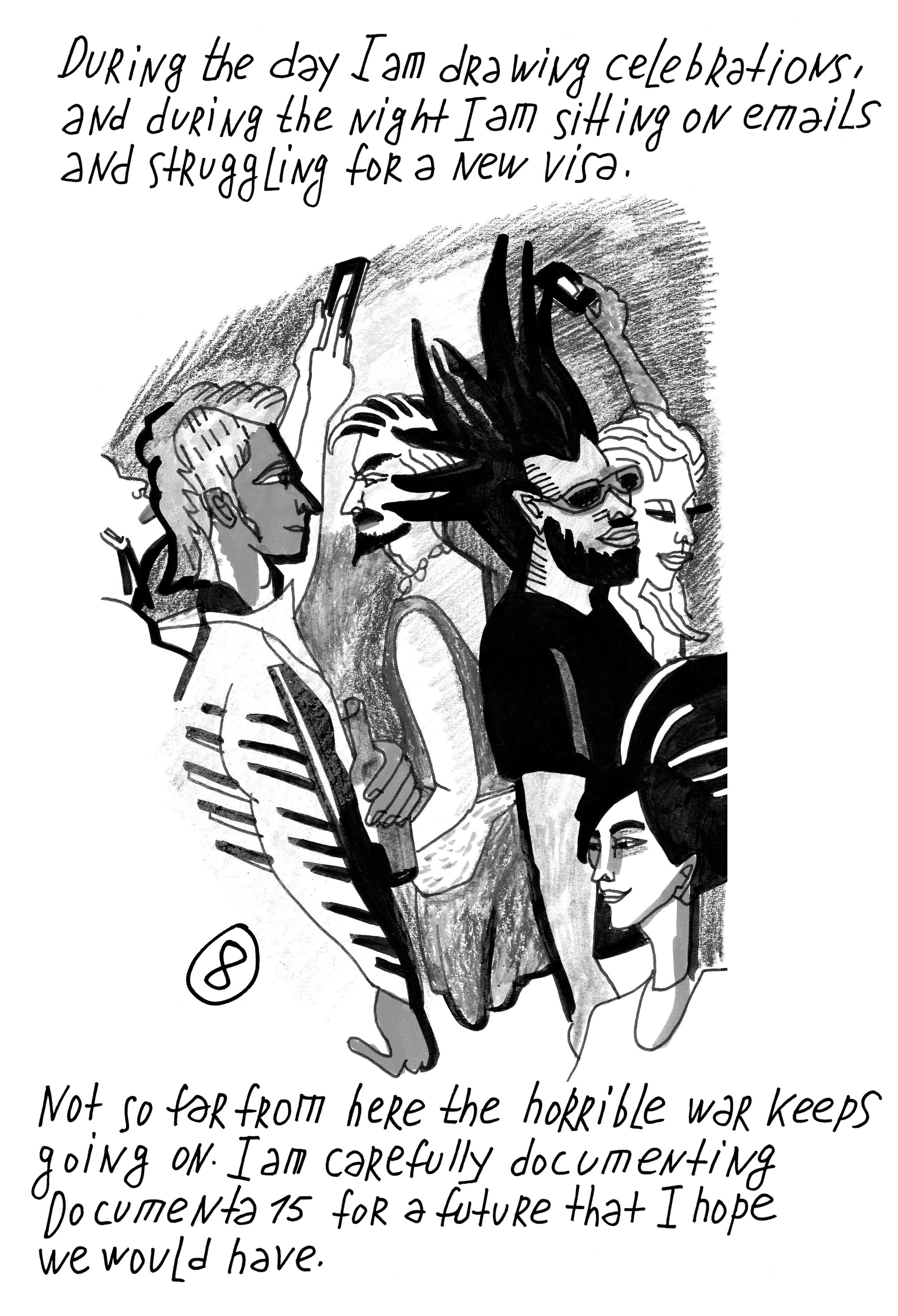 Victoria Lomasko's series HERE and THERE (2020) will be featured in an upcoming Harvesters collection by lumbung Press, developed by lumbung members and artists, and the artistic team of Documenta 15.