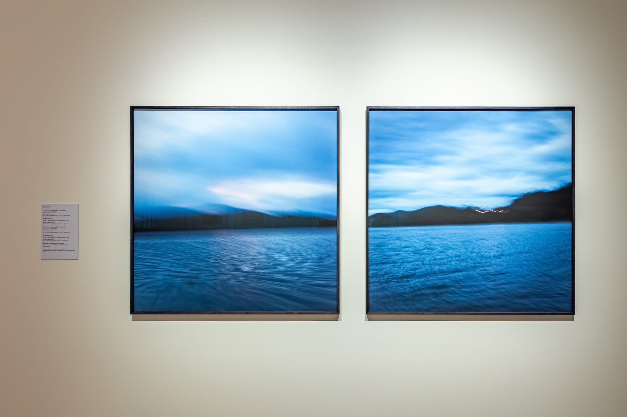 The Remnants (2016–17) series of 'One Day We’ll Understand' is represented in this year’s biennial by four enigmatic large-format photographic prints. Darkened landscapes, a blurry elephant bursting out of a thicket, and the tip of a tower poking out above treetops together evoke the dense jungle where, as one of the texts Sim collected notes, “every other banana leaf may hide one of the enemy.”