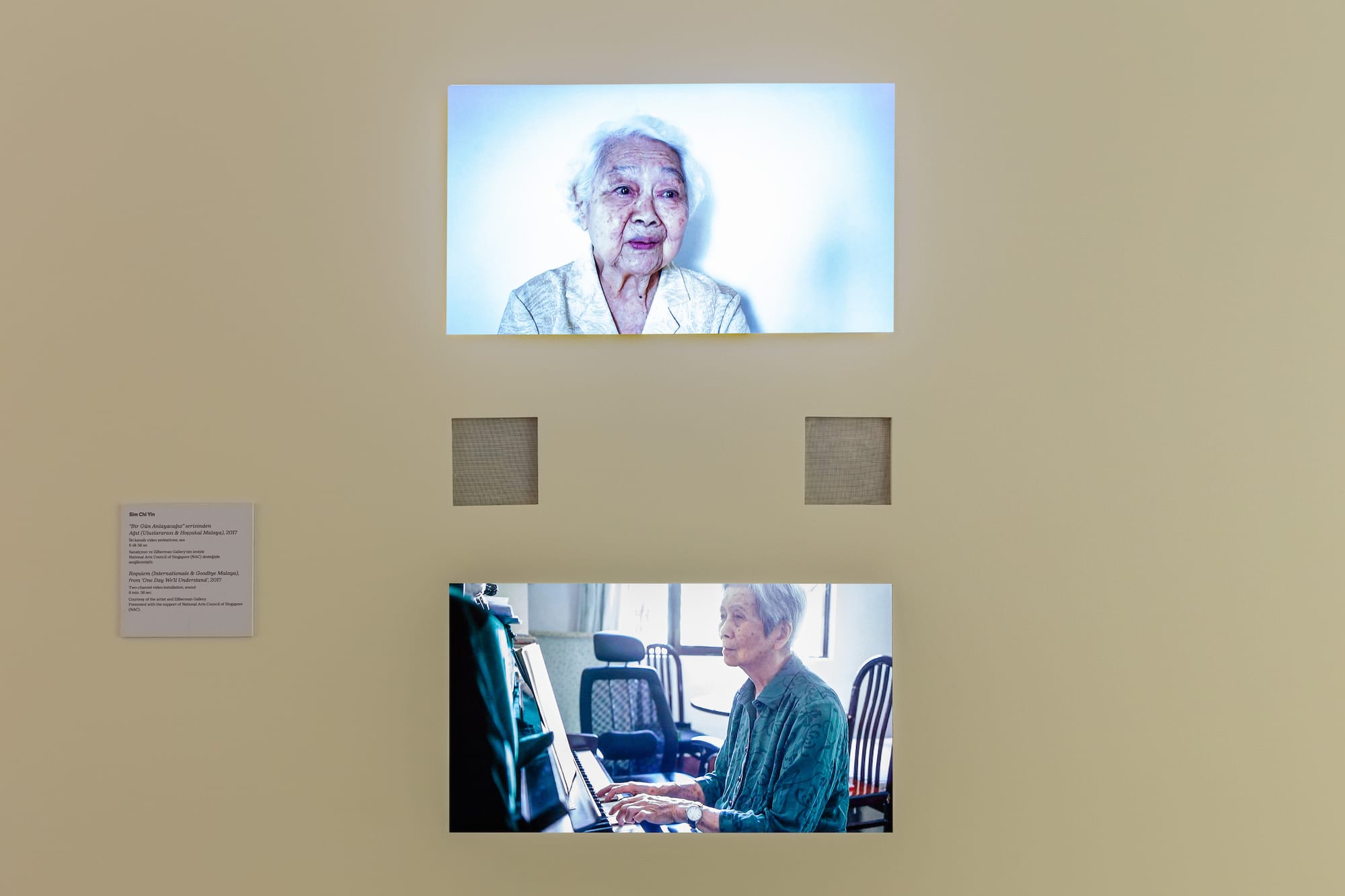 A final piece, Requiem (Internationale & Goodbye Malaya) (2016–18), is a two-channel video installation for which Sim filmed elderly exiled leftists singing these two old revolutionary songs. Some seem to struggle to remember the words before finding their voice and raising it confidently, but then lowering their heads and looking a little lost once the song is over, as Sim’s camera lingers.