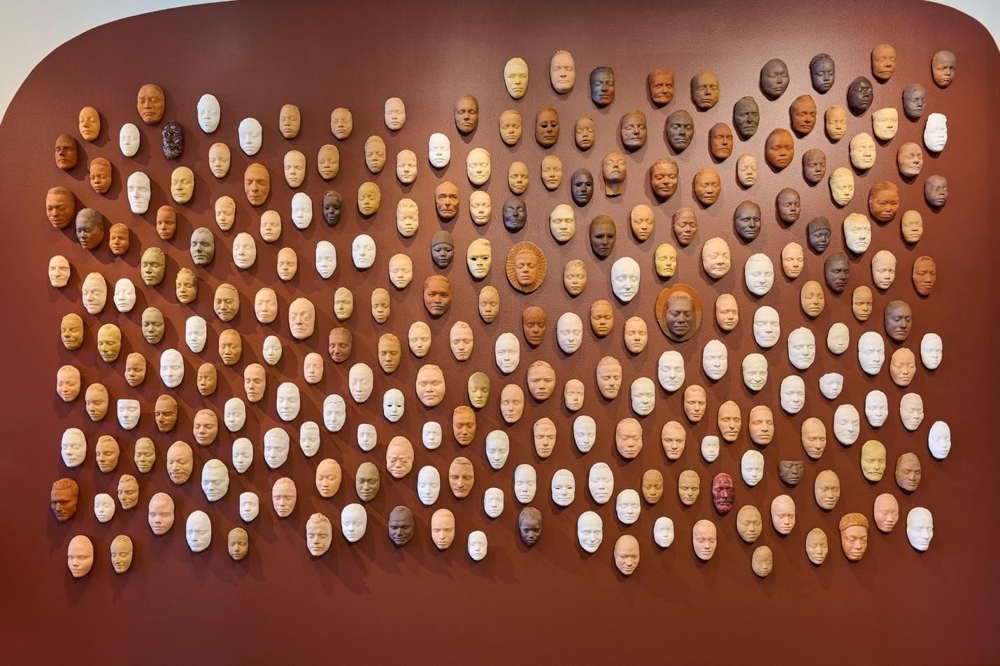 STANFORD, Calif. — The 233 masks that originally hung on the exterior of Ruth Asawa’s family home in San Francisco's Noe Valley are publicly displayed in their entirety for the first time in the ongoing exhibition The Faces of Ruth Asawa at Stanford University’s Cantor Arts Center. Installed on the reverse side of the wall upon which the Stanford Family Collection death masks are exhibited as part of Mark Dion’s The Melancholy Museum, Asawa’s life masks disentangle the impulse to collect from a culture of mourning — they do not keep count of past or future losses.