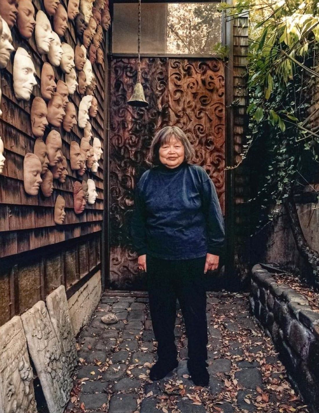 The masks are one of many repeating motifs in Asawa’s house, akin to the cobblestones that her children gathered to pave the walkway, the loops of wire in her sculptures, and the waves that meander and tessellate on the door. Asawa vowed to create a thousand, or even ten thousand life masks. She collected the features of all those who she had the fortune of knowing — from her mentor at Black Mountain College, Gwendolyn Knight, to her student Willie at McAteer High School to her long-time friend and collaborator Mae Lee, who lived next door to Asawa, brought her food, and practiced tai chi with her for the last 30 years of Asawa’s life.