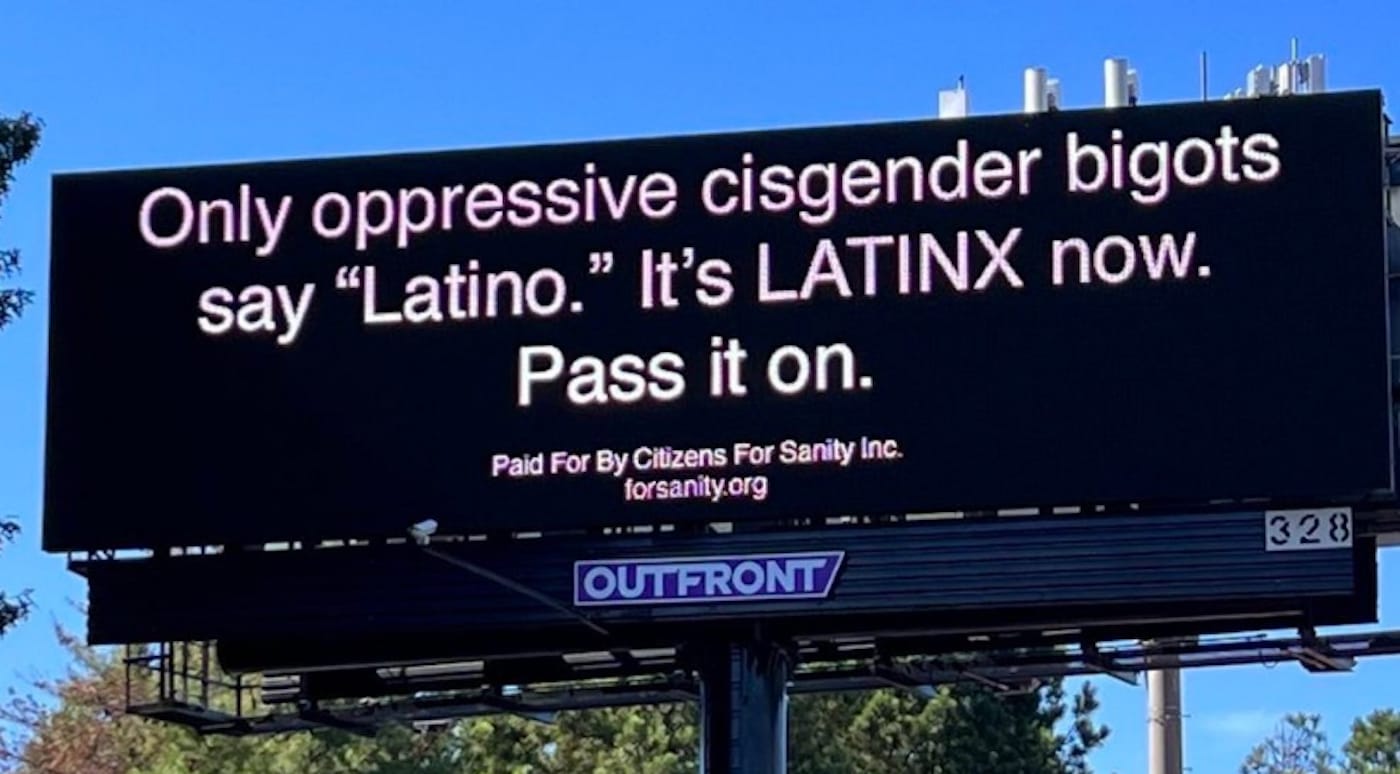 COMMERCE, Calif. — In October, a freeway billboard in Commerce, a few miles southeast of downtown Los Angeles, proclaimed: “Only oppressive cisgender bigots say ‘Latino.’ It’s LATINX now. Pass it on.” A billboard with the same message was also erected in Arizona.