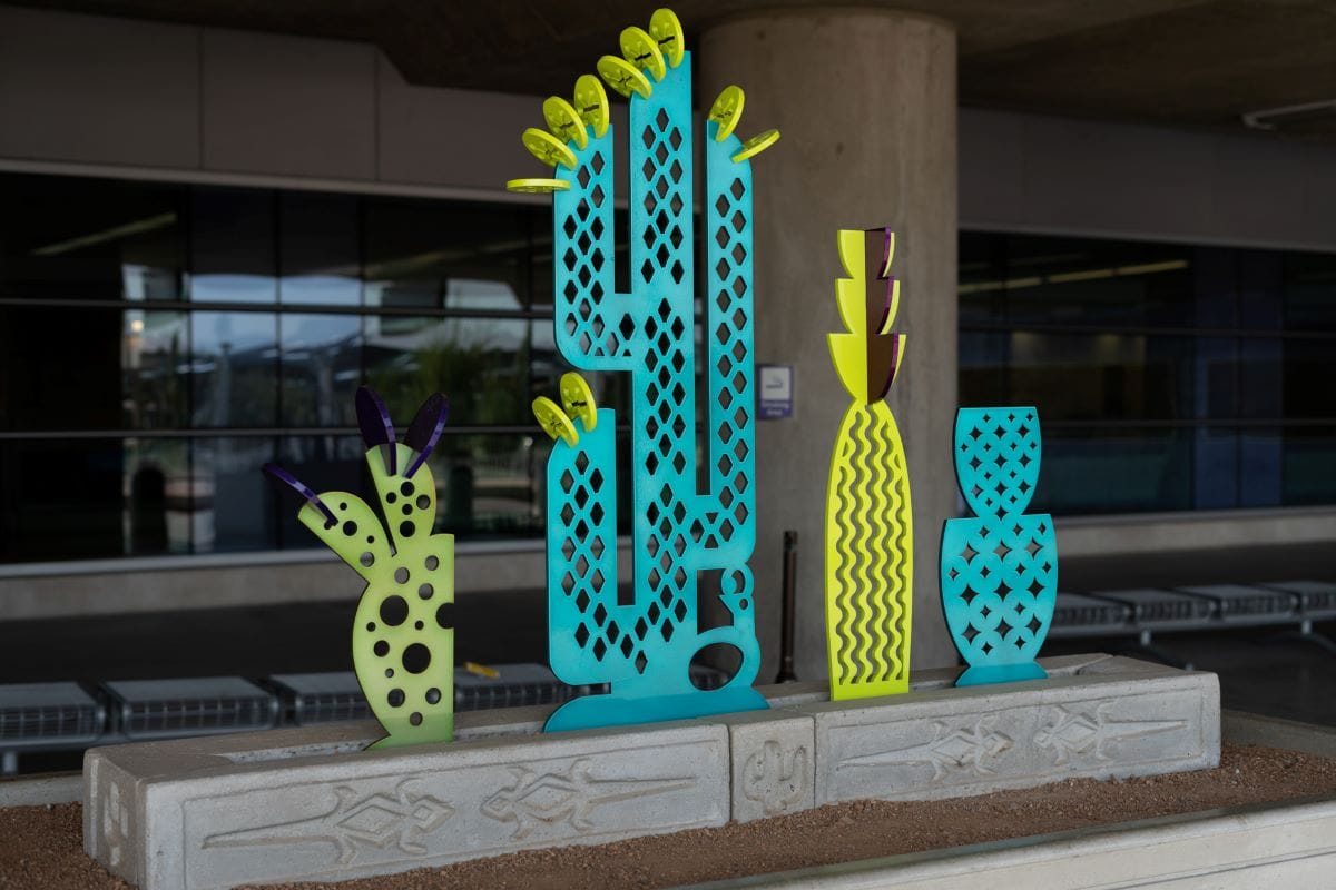 Several of the nation’s major airports, including Phoenix Sky Harbor International Airport in Arizona, have completed significant additions or renovations in recent years. In 2022, Seattle-Tacoma International Airport in Washington opened its new International Arrivals Facility, where five painted sculptures by Marela Zacarías hang suspended above baggage claim carousels. And three major airports in the metropolitan New York area are in flux now, as well.