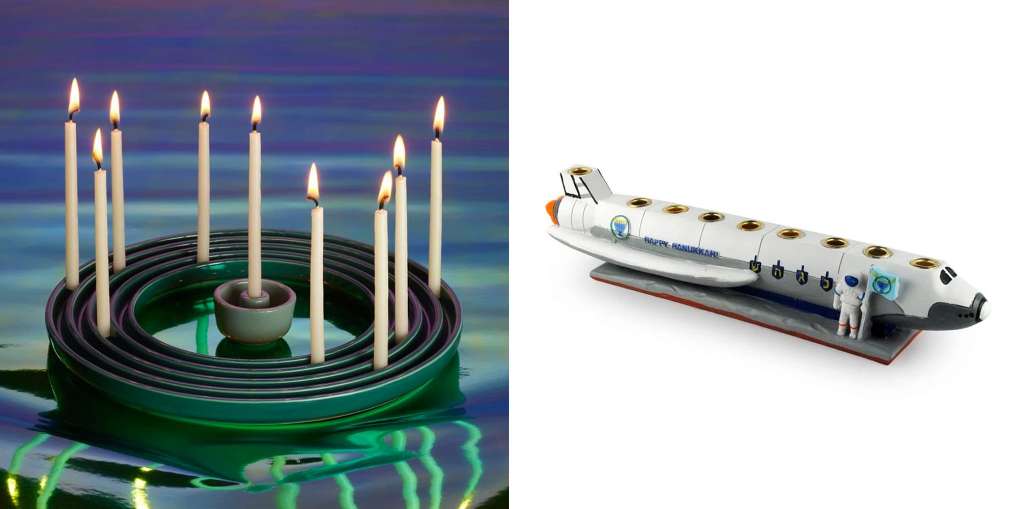 Another highlight from the Jewish Museum shop is a kid-friendly Space Shuttle menorah, the perfect way to take your faith all the way to the stars. In my opinion, it also points to a missed opportunity for someone to create the "Menorah Borealis" — which would serve as both a cosmic celebration of the Festival of Lights and of puns, even more common at the Jewish dinner table than a basket of challah.
